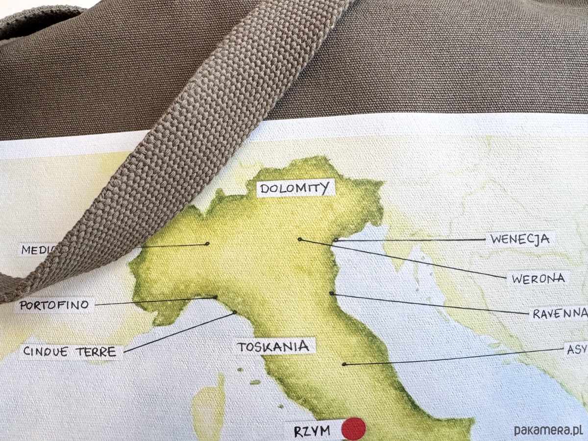 Nadruk: Mapa słonecznej Italii. Reprodukcja ręcznie malowanej ilustracji akwarelowej.