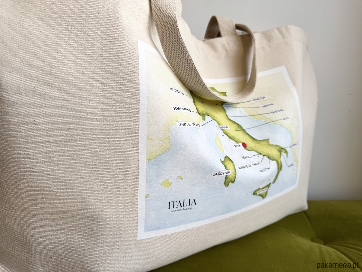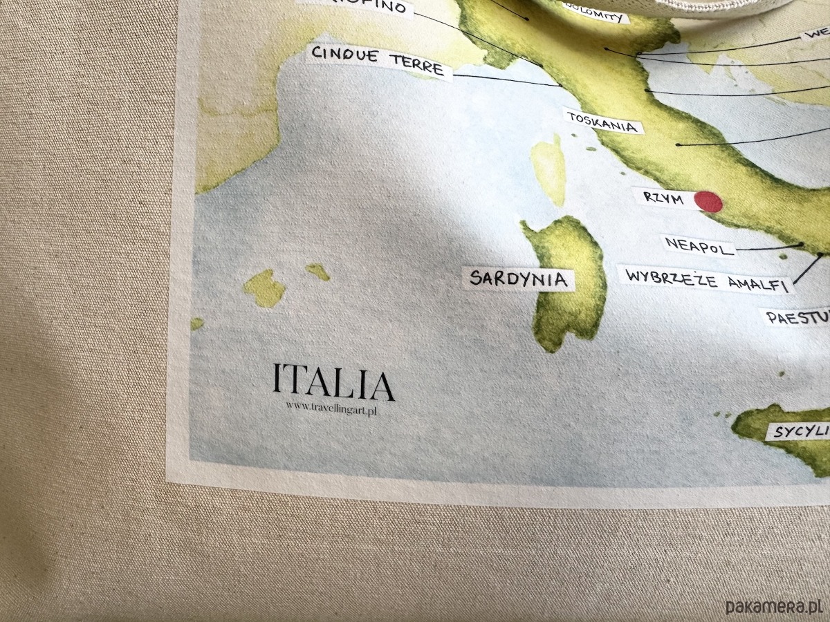 Nadruk: Mapa słonecznej Italii. Reprodukcja ręcznie malowanej ilustracji akwarelowej.