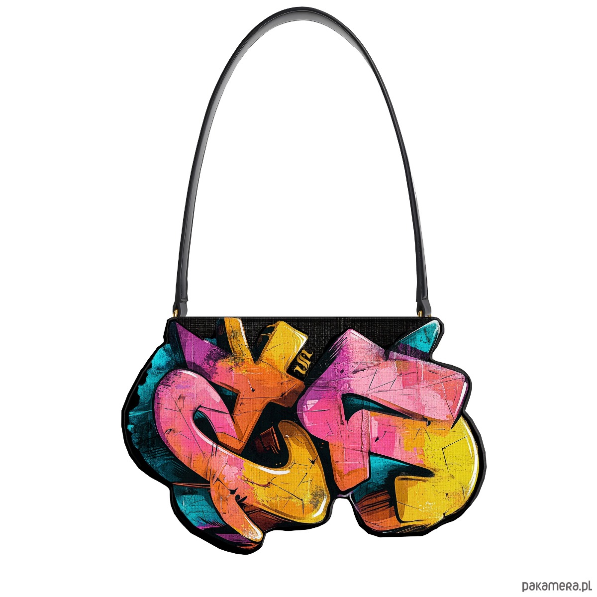 Torebka inspirowana ulicznym graffiti to połączenie artystycznej ekspresji z nowoczesnym rzemiosłem. Wykonana z wysokiej jakości płótna, na którym nadrukowano trwałą grafikę nawiązującą do estetyki street artu. Całość osadzona jest na bydlęcej skórzanej podstawie, która zapewnia formie stabilność, a jednocześnie podkreśla unikalny charakter modelu.