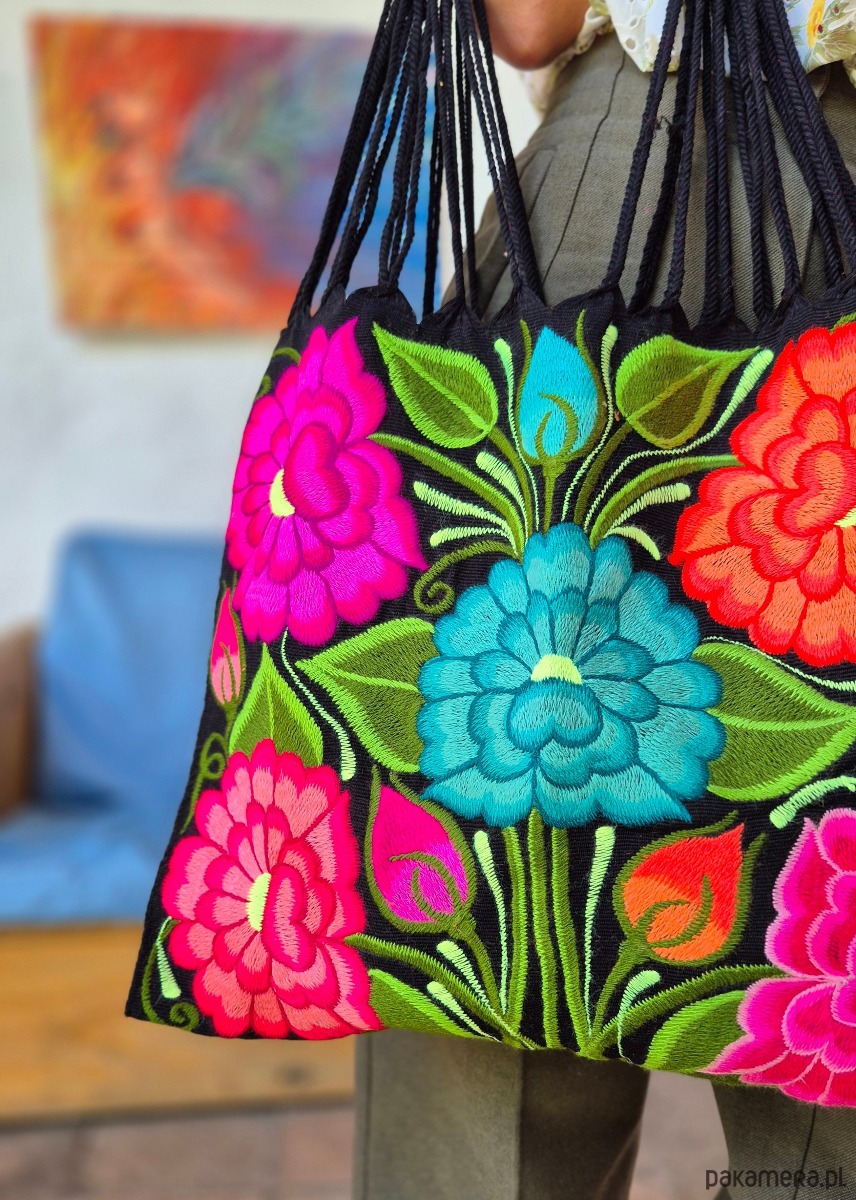 Torba haftowana Zinacantan kolorowe kwiaty hafty z Meksyku