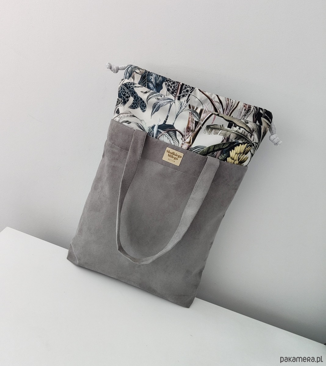 Torba HANA Monkey&Banana Tree-duża szara torba z kominem z nubuku