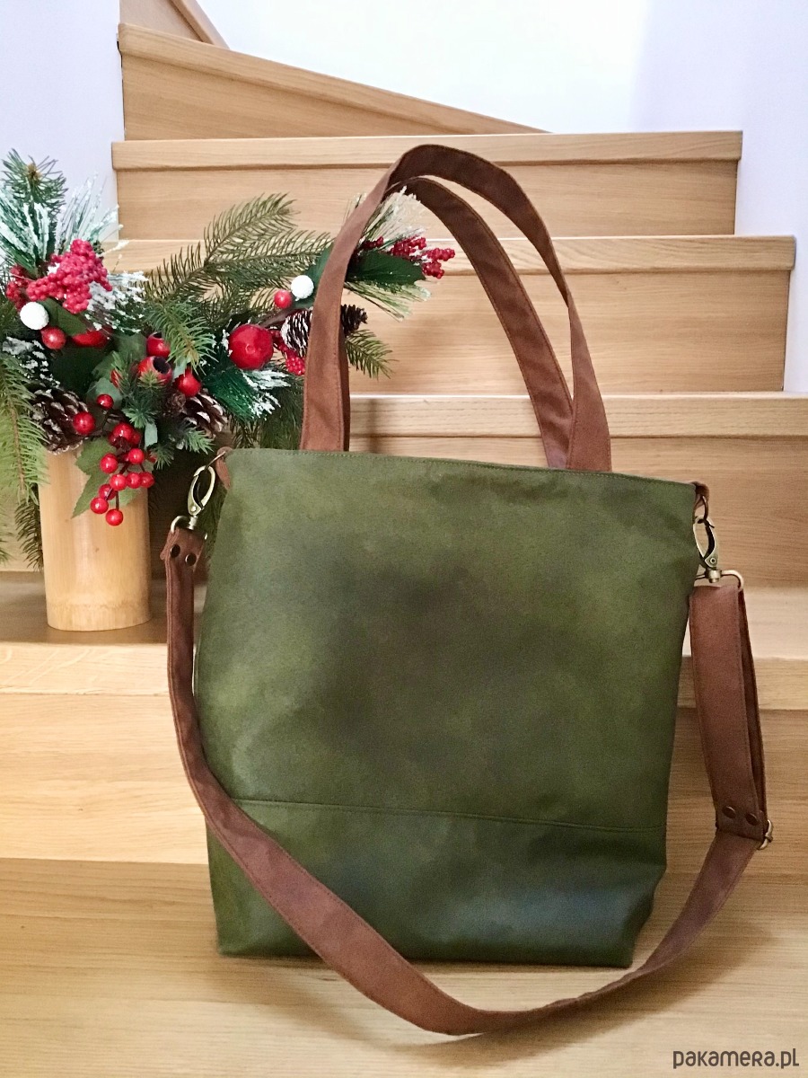 W środku wykończona podszewką, z dwudzielną kieszonką.