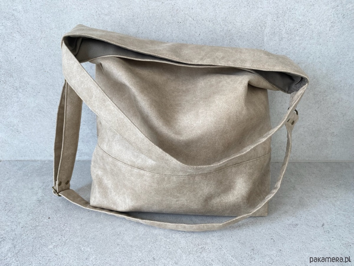 Przepastna torba wykonana z koniakowego eko nubuku.