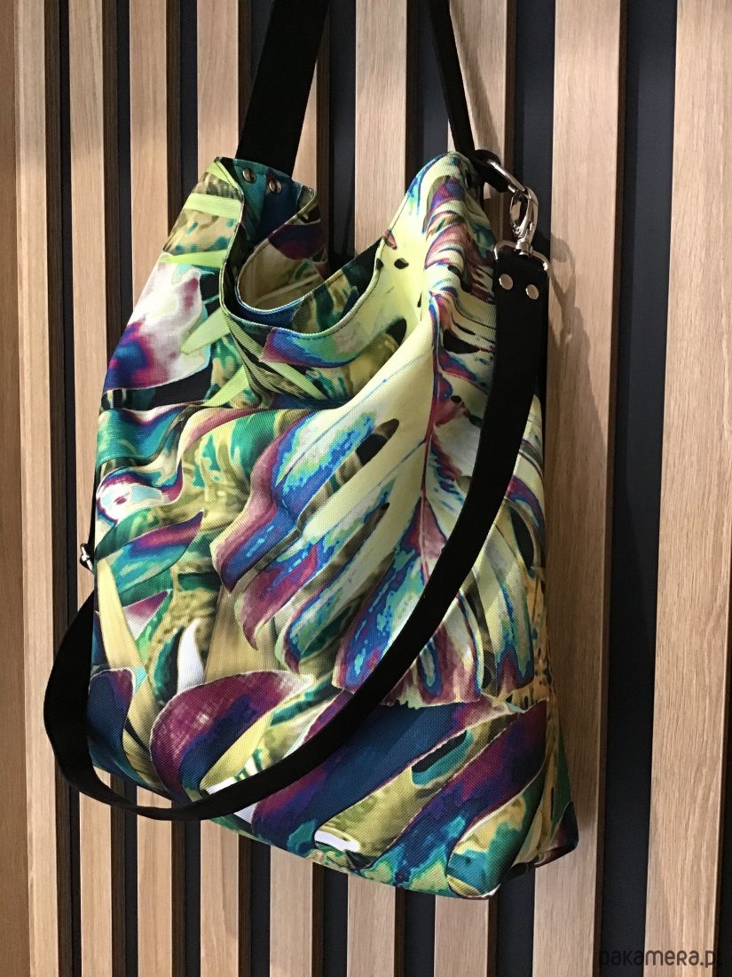 wykonana z workowatej tkaniny o płóciennym splocie. Energetyczne kolory.