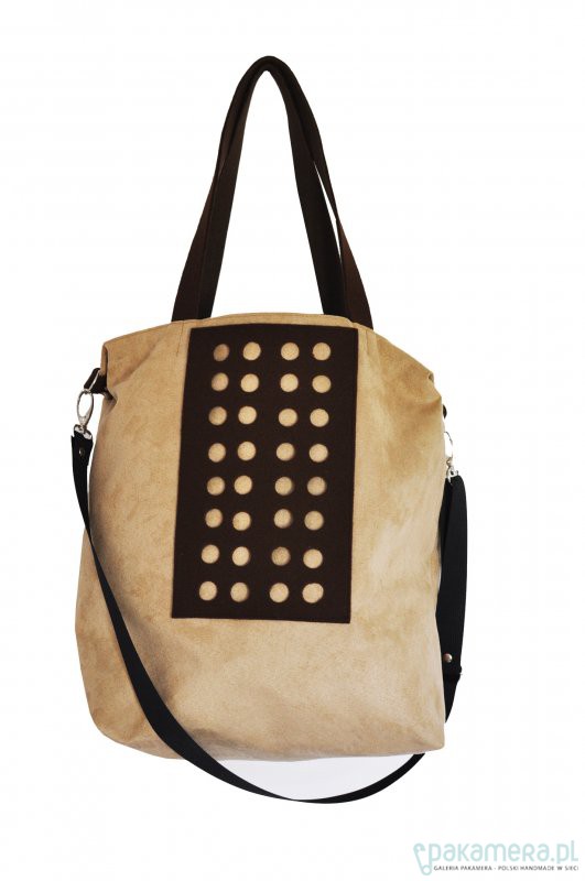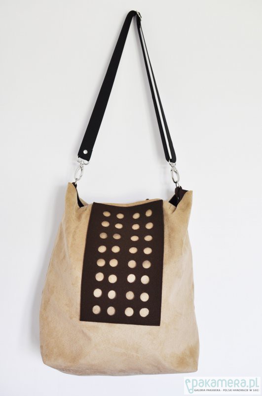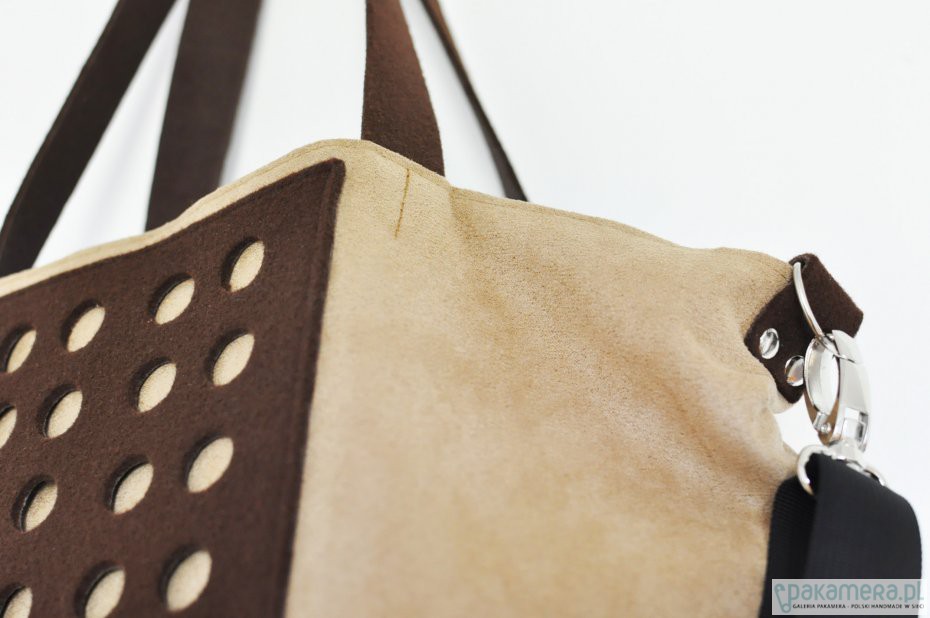 Przepastna torba wykonana z alcantary (sztucznego zamszu) w połączeniu z filcem.