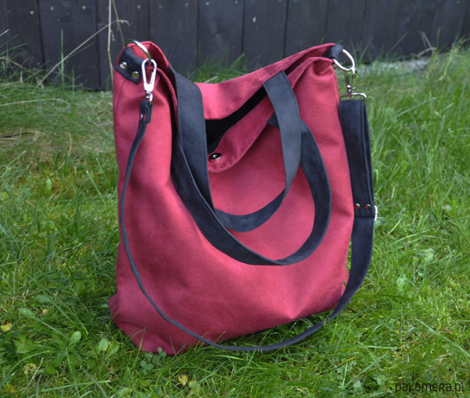 TORBA HOBO XXL - bordo, czerń