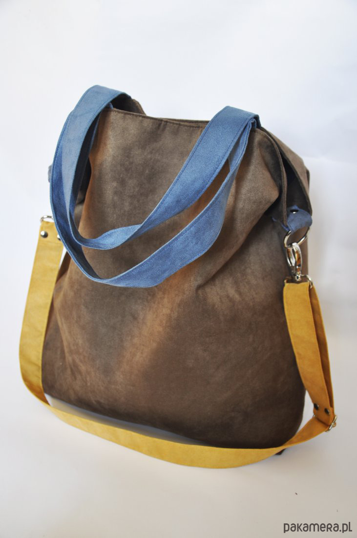 TORBA HOBO XXL - brąz, niebieski, żółty