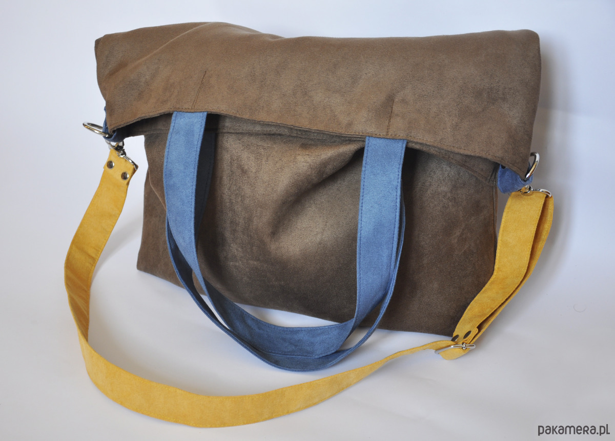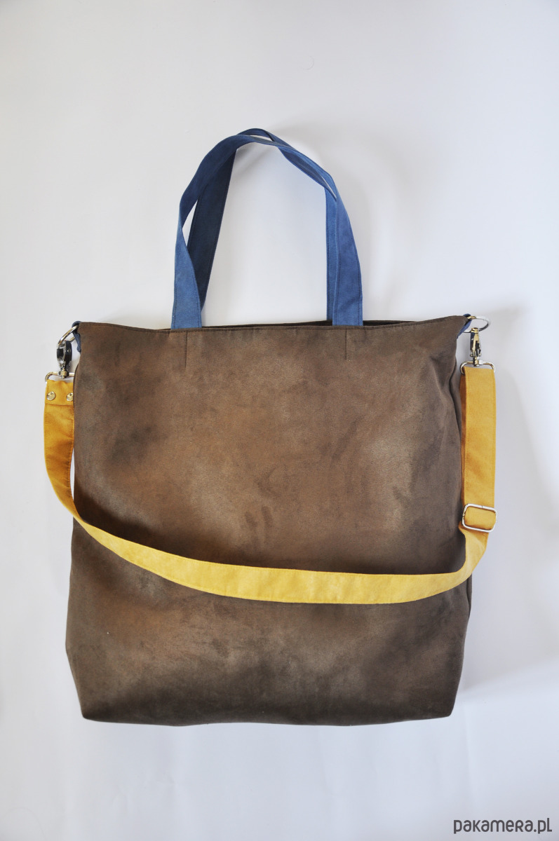 TORBA HOBO XXL - brąz, niebieski, żółty