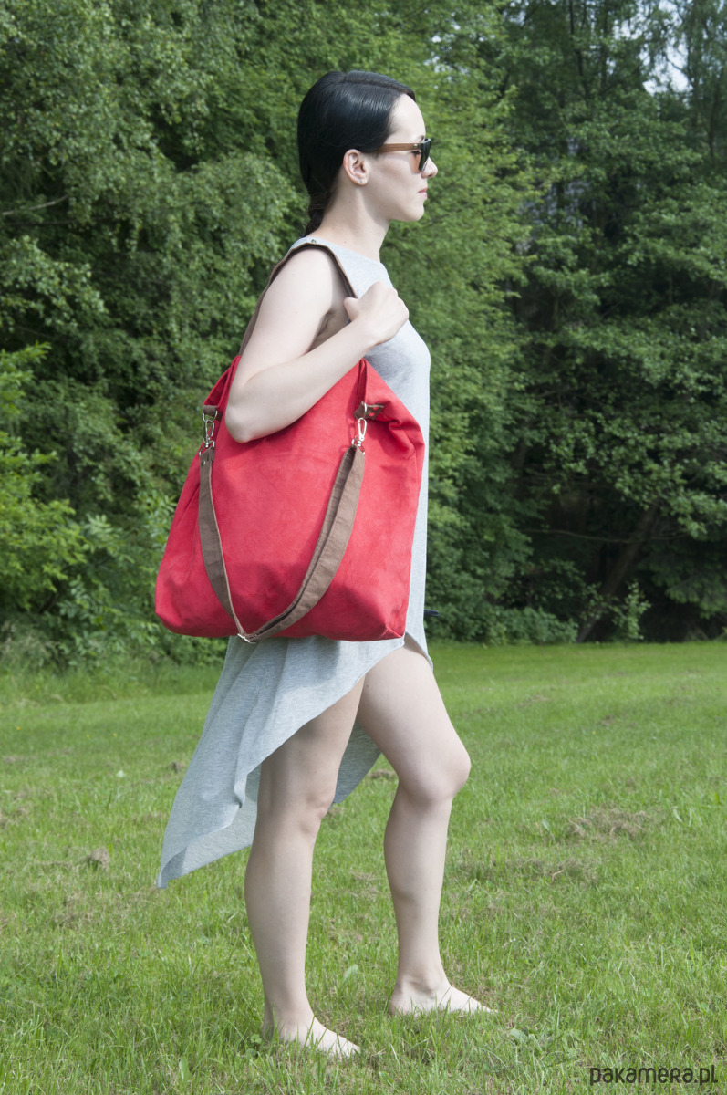 Przepastna torba wykonana z alcantry (syntetycznego zamszu).