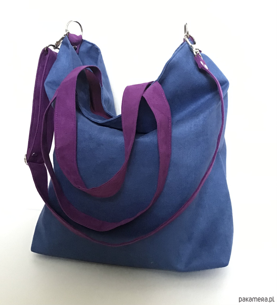 Przepastna torba wykonana z alcantary (syntetycznego zamszu). Energetyczne kolory. Mieści format A4 i więcej... Zapinana na magnes. W środku wykończona podszewką, z dwudzielną kieszonką. Możliwość noszenia na dwa sposoby-pasek dopinany na karabińczyki, regulowany w zakresie 125cm- 70cm wykonany z alcantary, uszy także. Wymiary: szer. w najszerszym miejscu - 47cm szer. na dole - 35cm wys. - 42cm głębokość - ok 12cm długość ucha - 60cm Czas oczekiwania na wykonanie torebki ok. 7dni roboczych od momentu zakupu. Możliwość zamówienia torebki w dowolnym zestawieniu kolorystycznym (wzornik w załączniku).