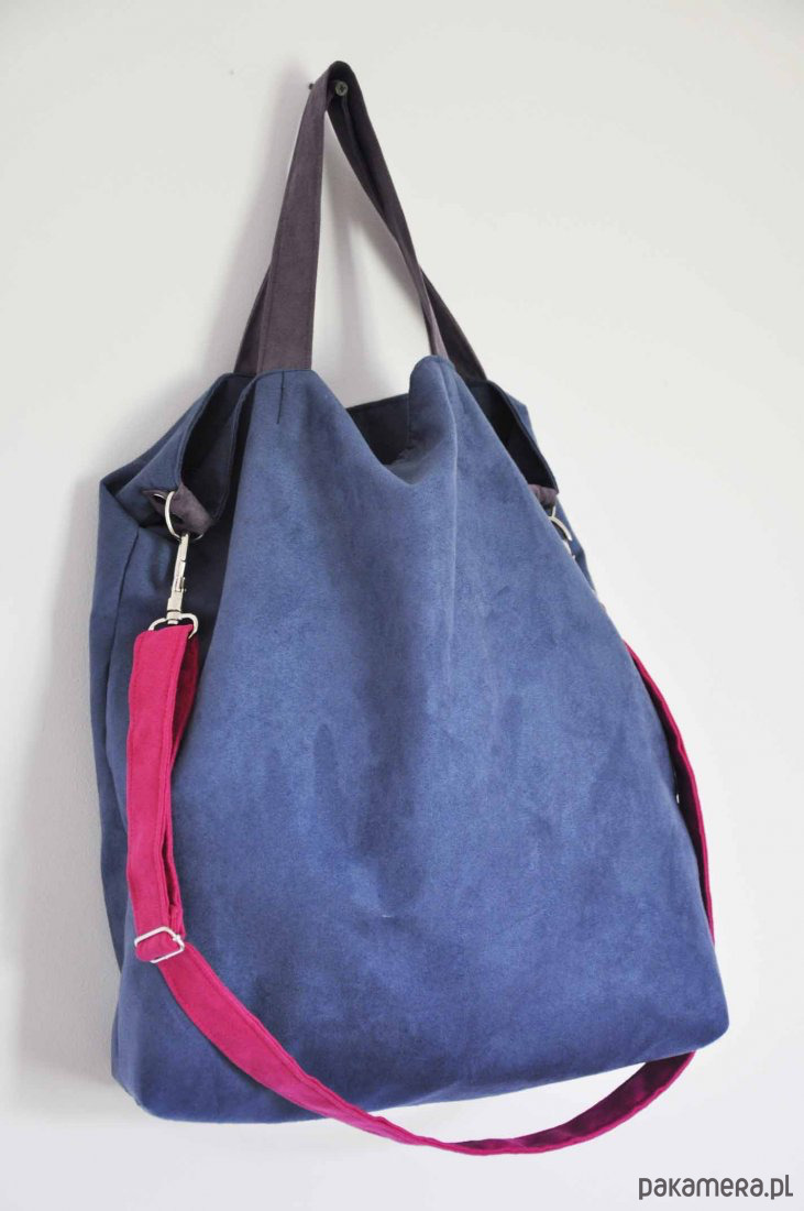 TORBA HOBO XXL - niebieski, fuksja, wrzos