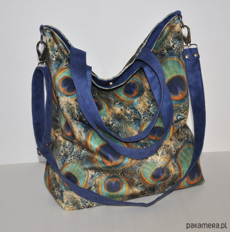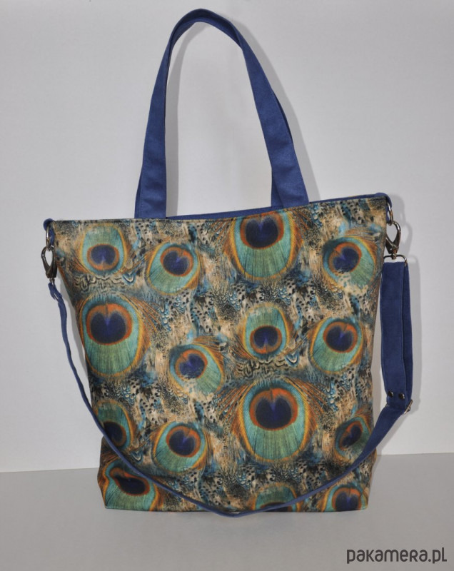 Pojemna torba z printem w pawie pióra,