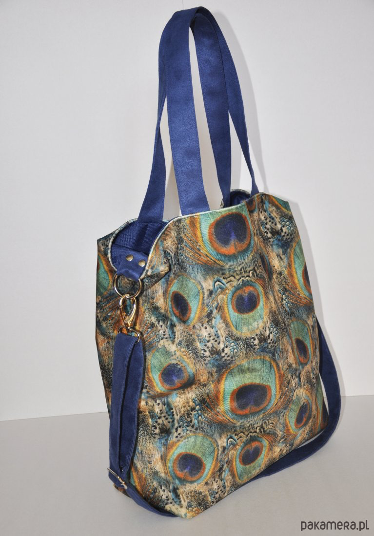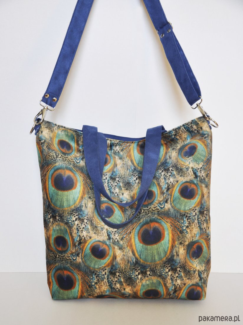 Pojemna torba z printem w pawie pióra,