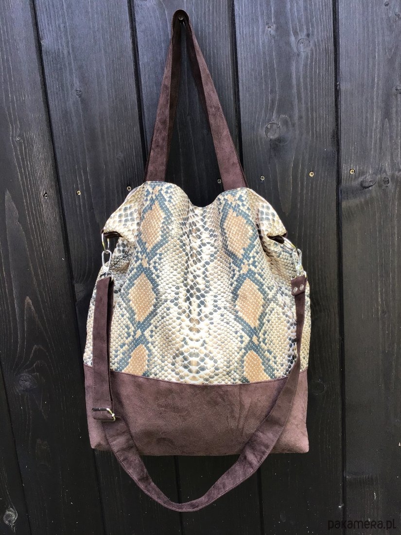 Przepastna torba z printem skóry węża,