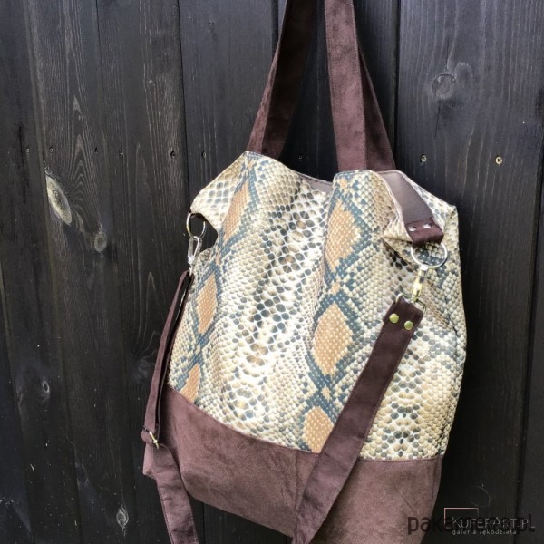 wykonana z workowatej tkaniny o płóciennym splocie w połączeniu z alcantarą.
