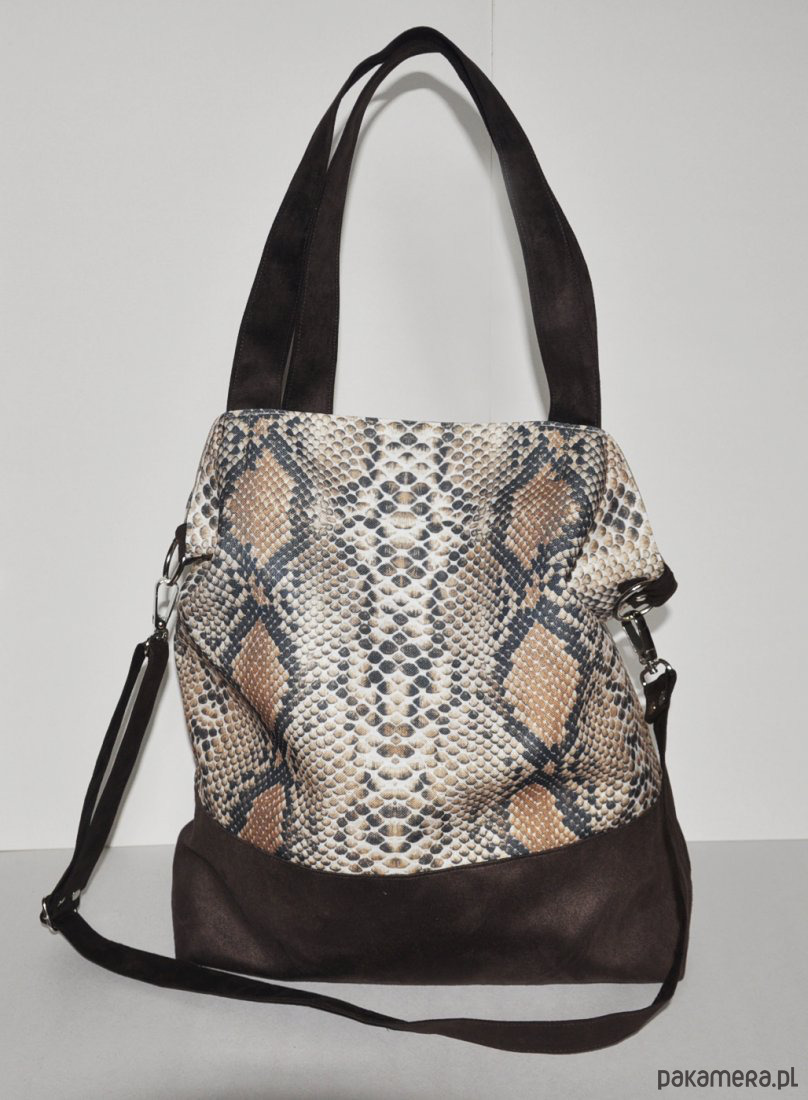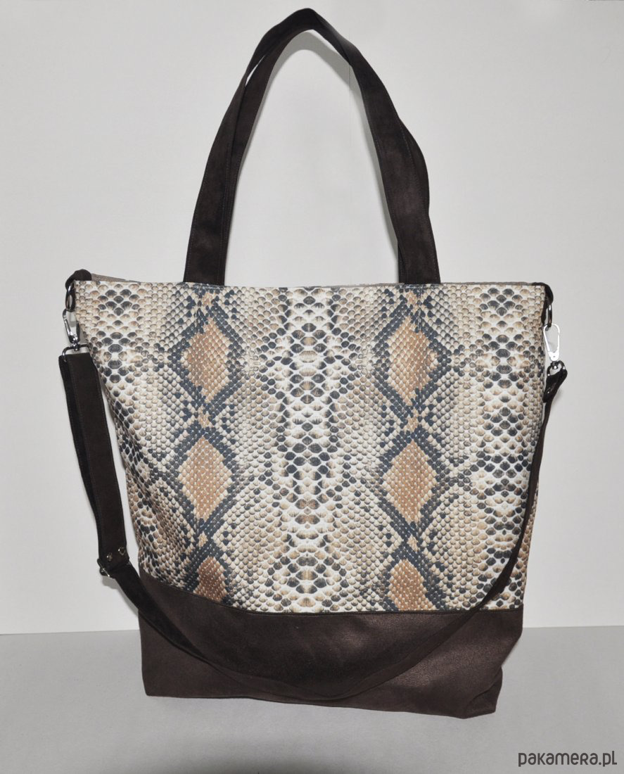Przepastna torba z printem skóry węża,