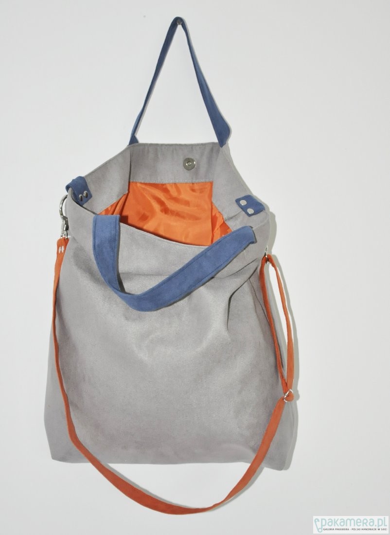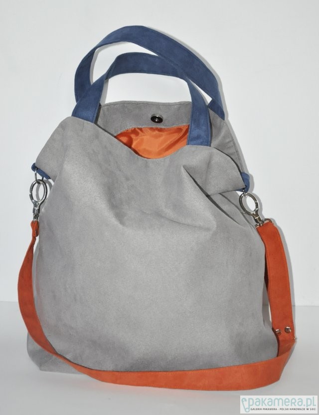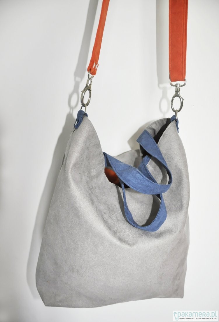 Torba hobo XXL - szarość, kobalt, pomarańcz