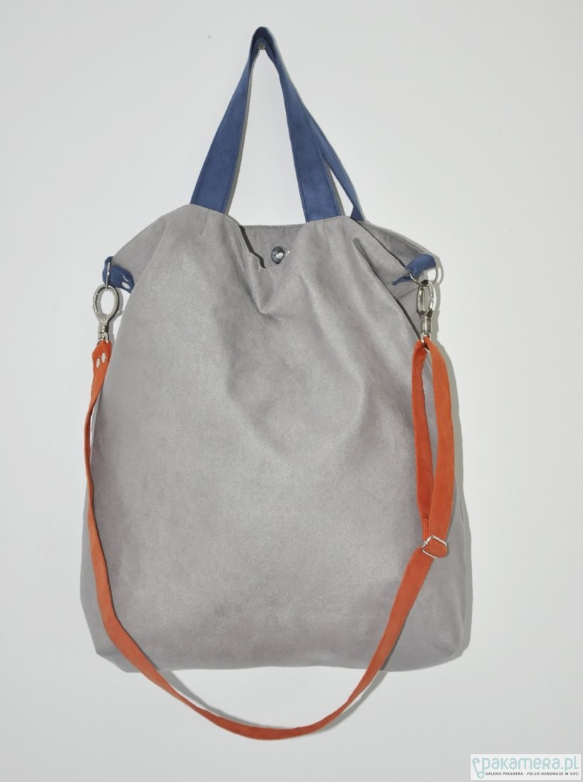 Przepastna torba wykonana z alcantary (syntetycznego zamszu).