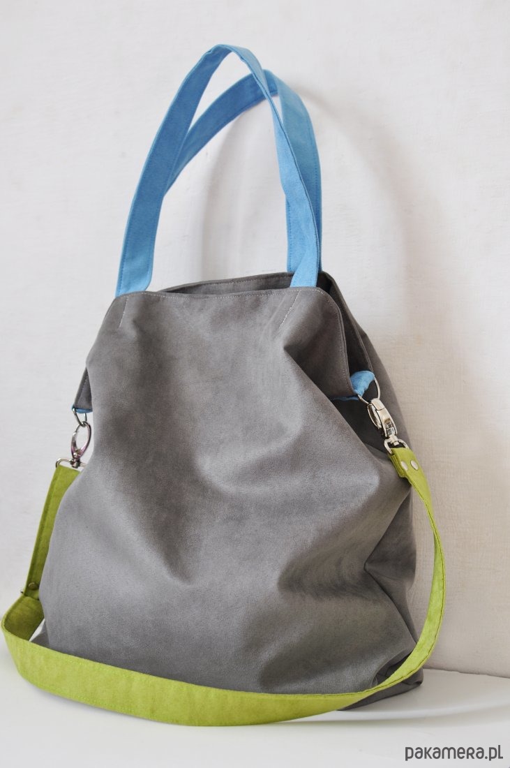 Torba hobo XXL- szary, limonka,błękit