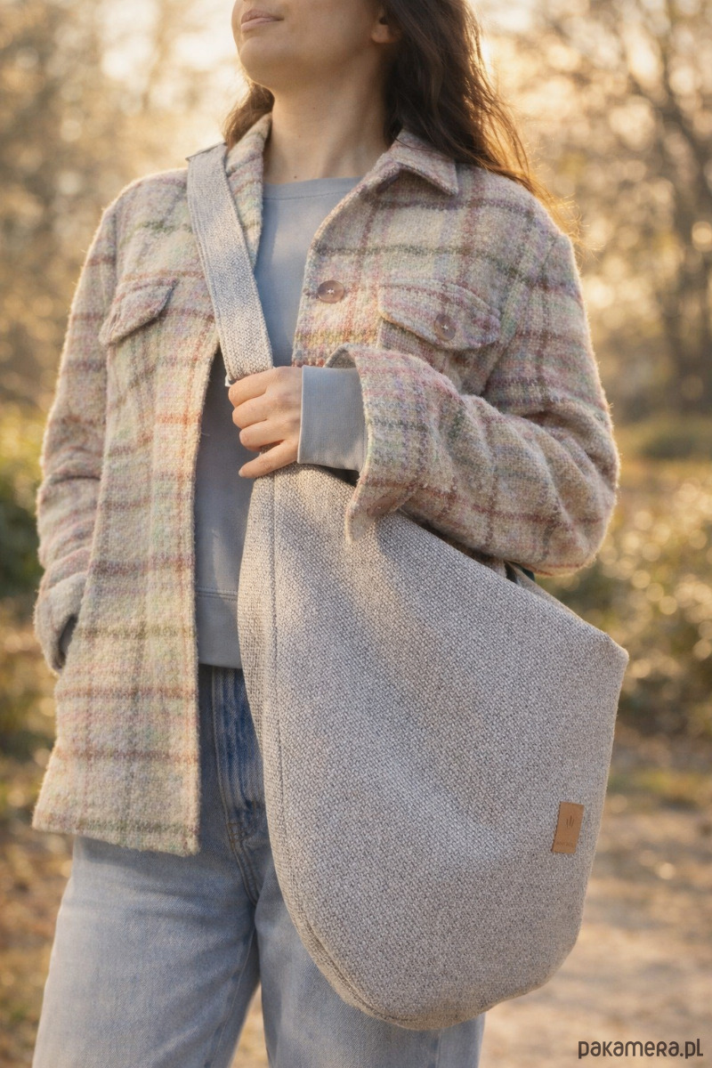 Duża torebka worek z tkaniny o wyczuwalnym, grubym splocie