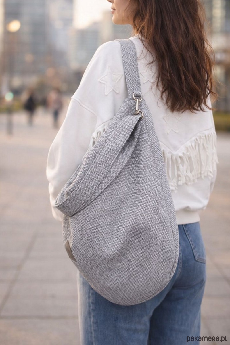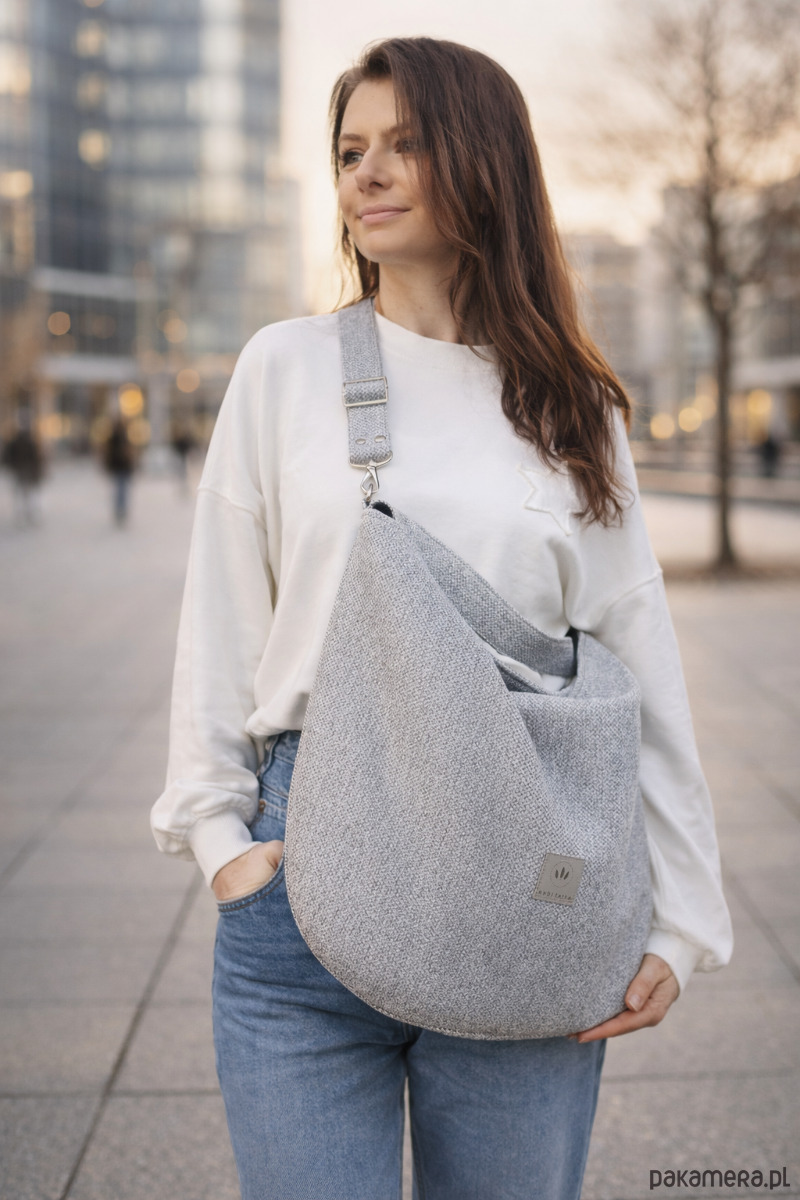 Torba hobo z plecionki tapicerskiej Jasnoszara
