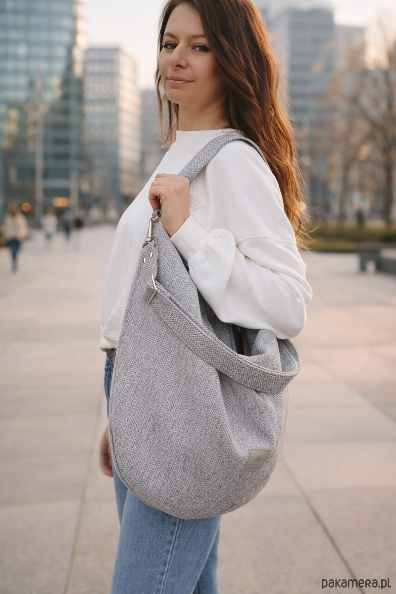 Duża torebka worek z tkaniny o wyczuwalnym, grubym splocie