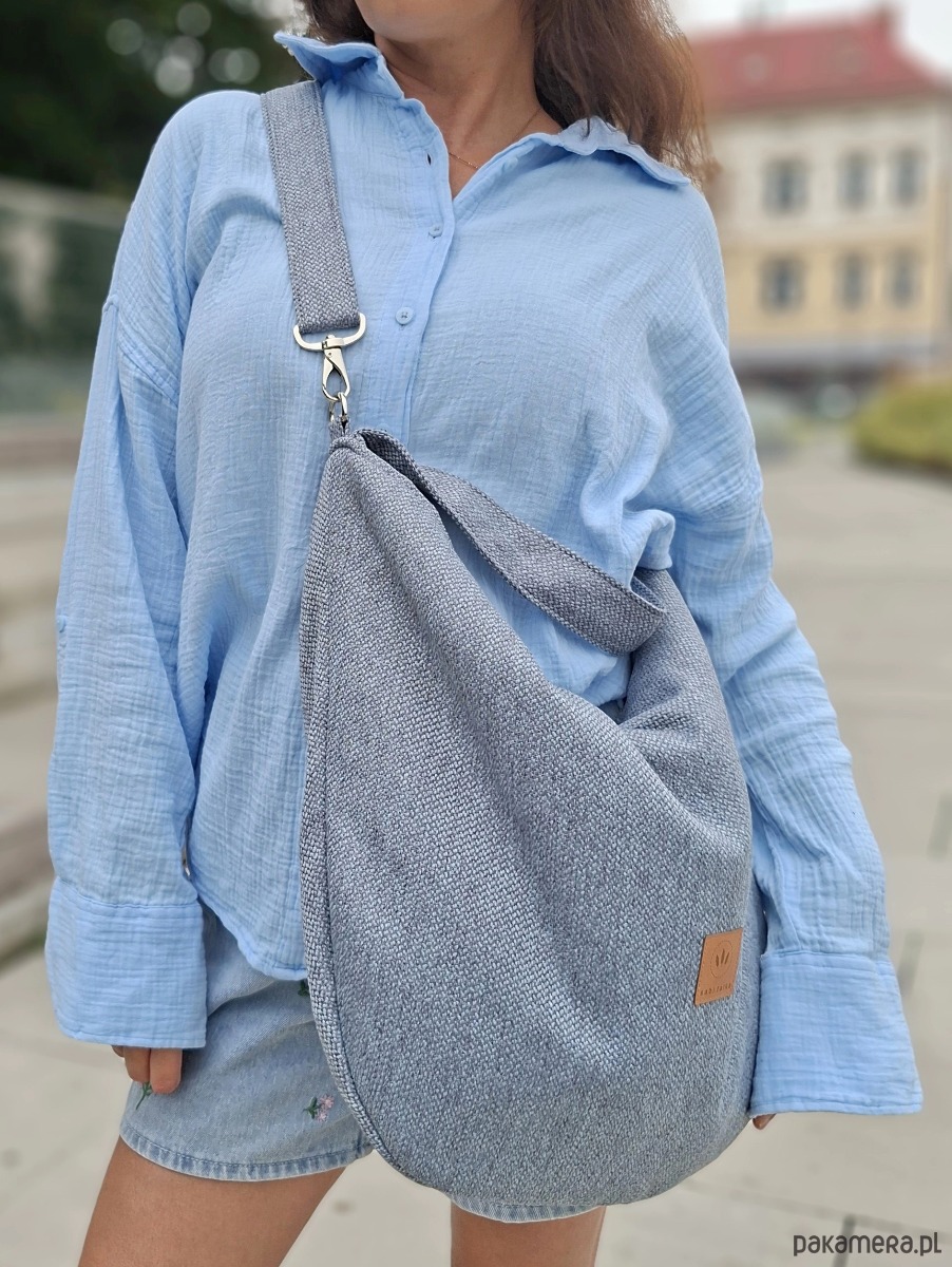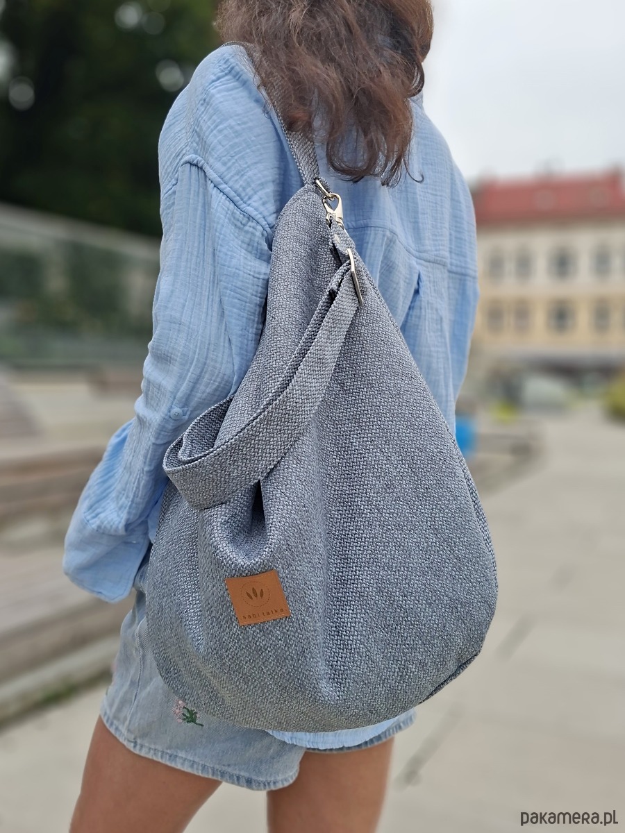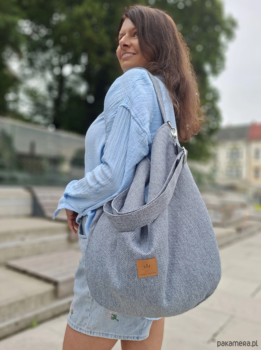 Duża torebka worek z tkaniny o wyczuwalnym, grubym splocie