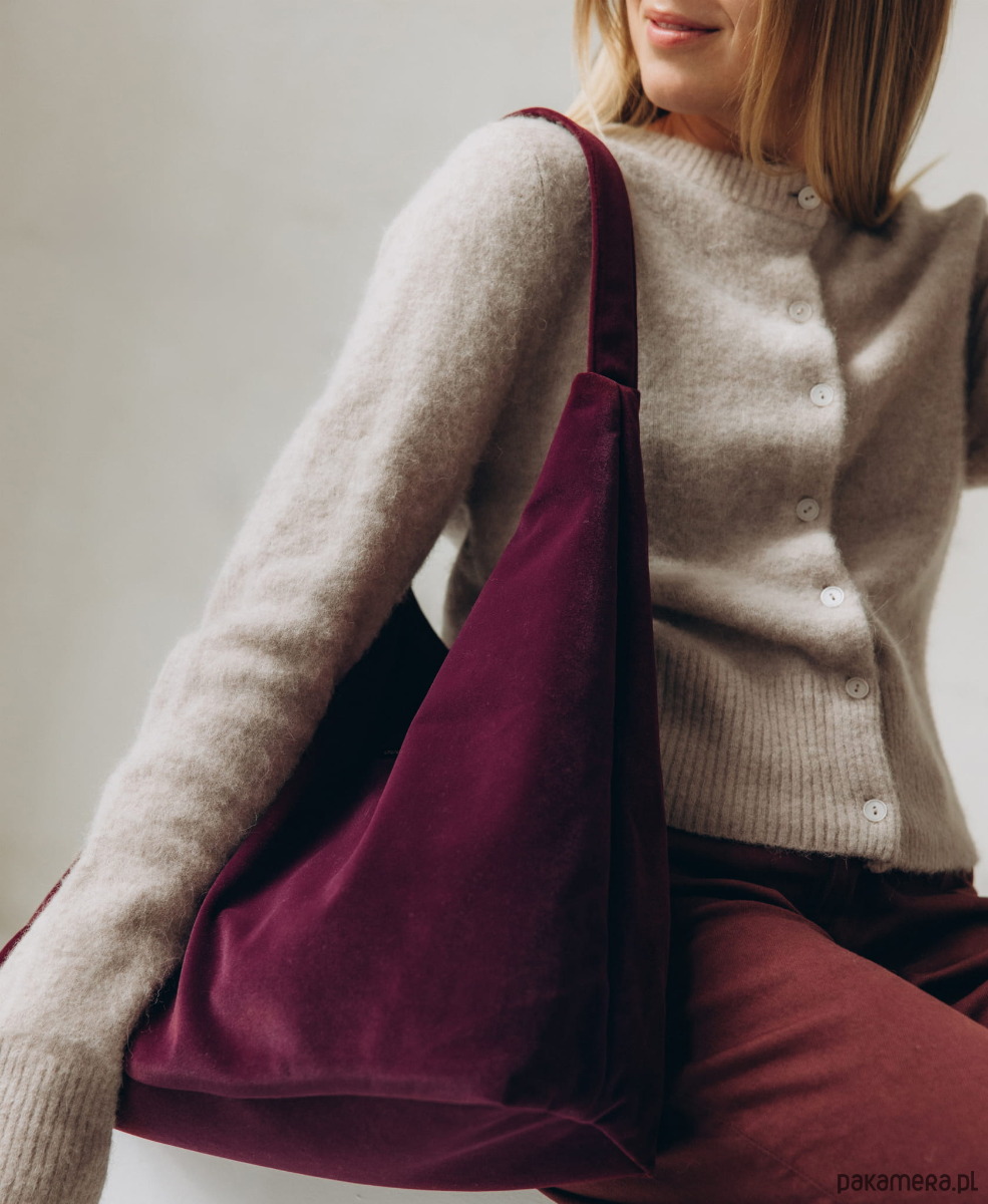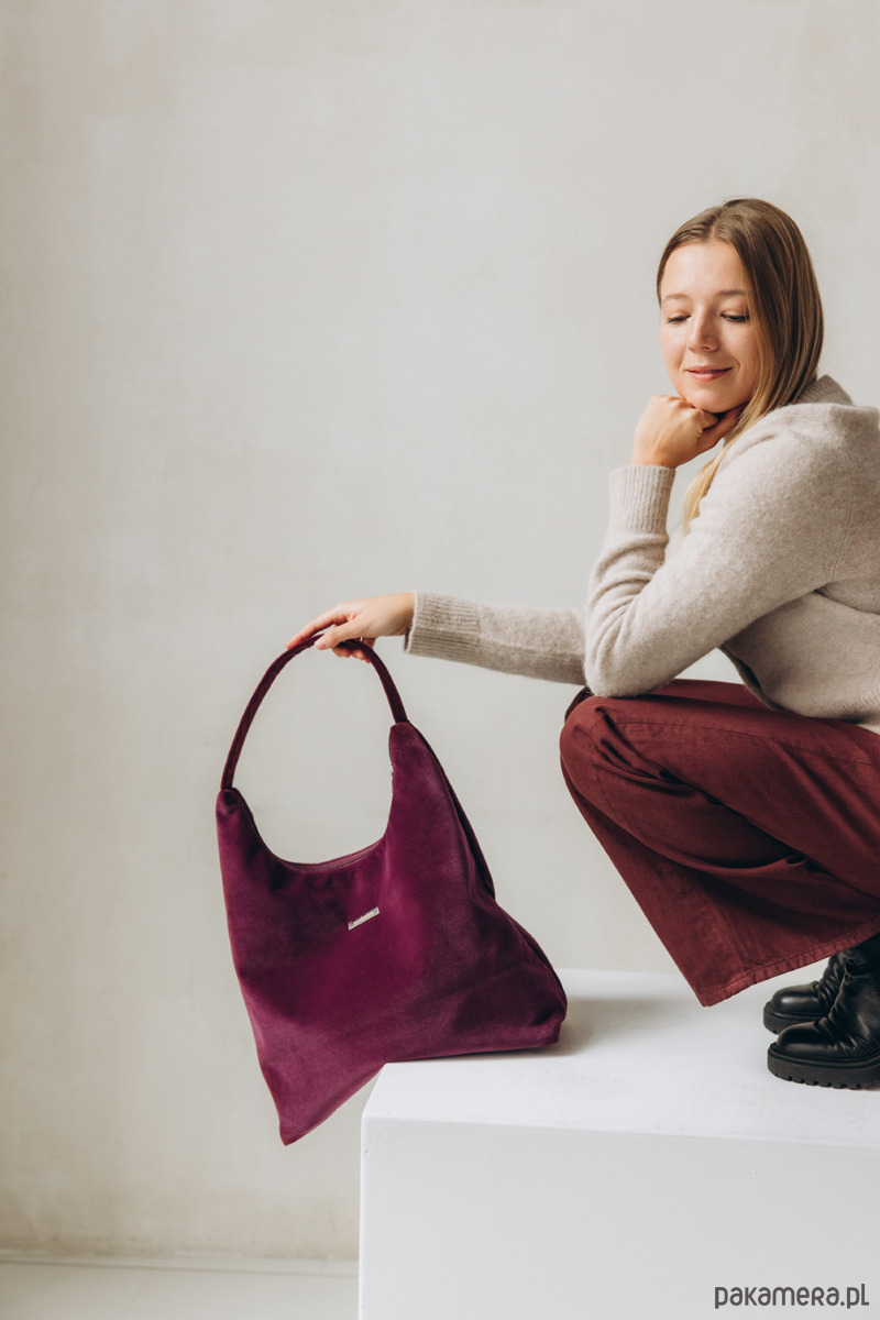 Torba HOBO z weluru tapicerskiego w kolorze BAKŁAŻANOWYM