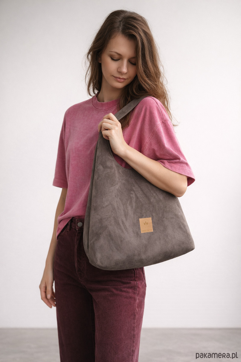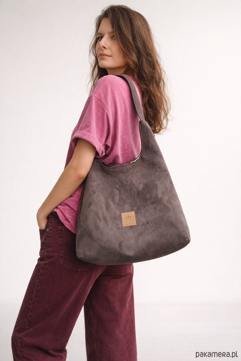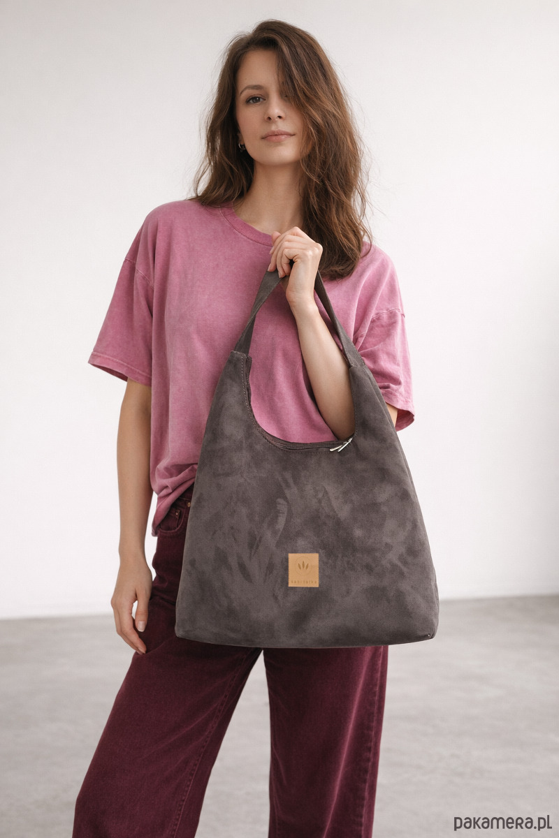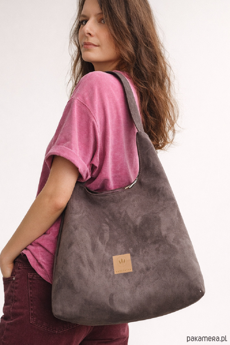 Elegancka torba typu hobo o zamszowej, przyjemnej w dotyku fakturze.