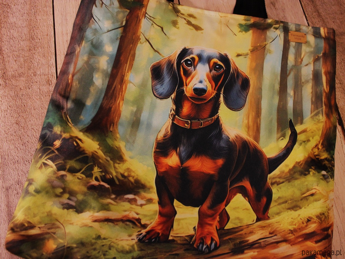 Torba shopperka uszyta z poliestru wodoodpornego z kieszonką w środku.