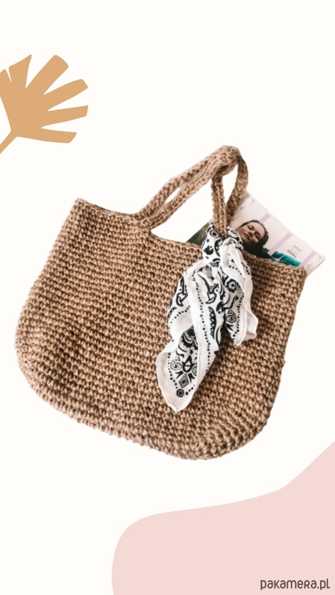 Torba - kosz wykonana ręcznie na szydełku ze sznurka jutowego.