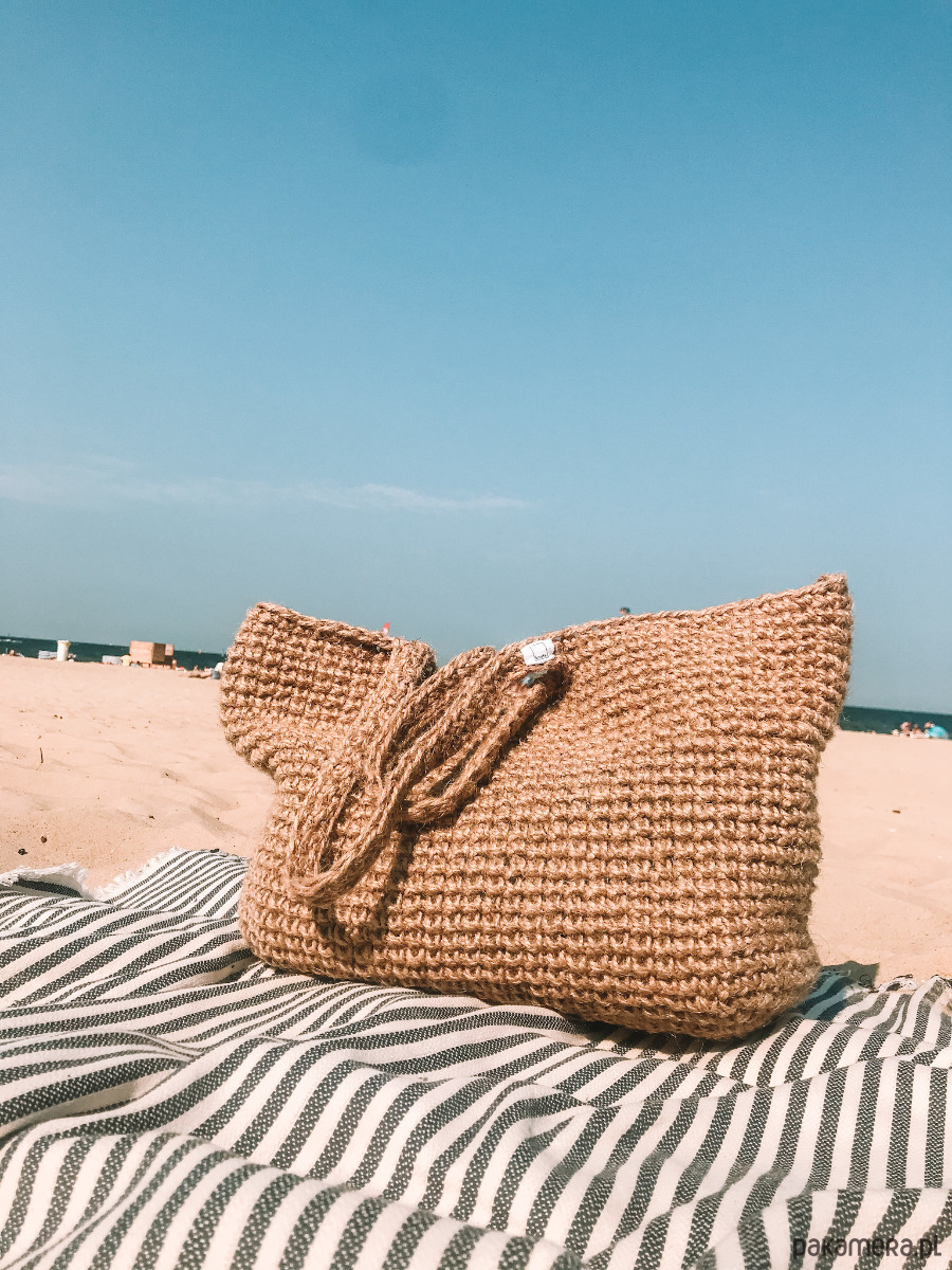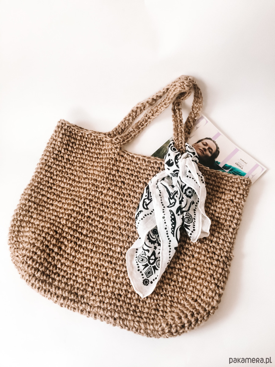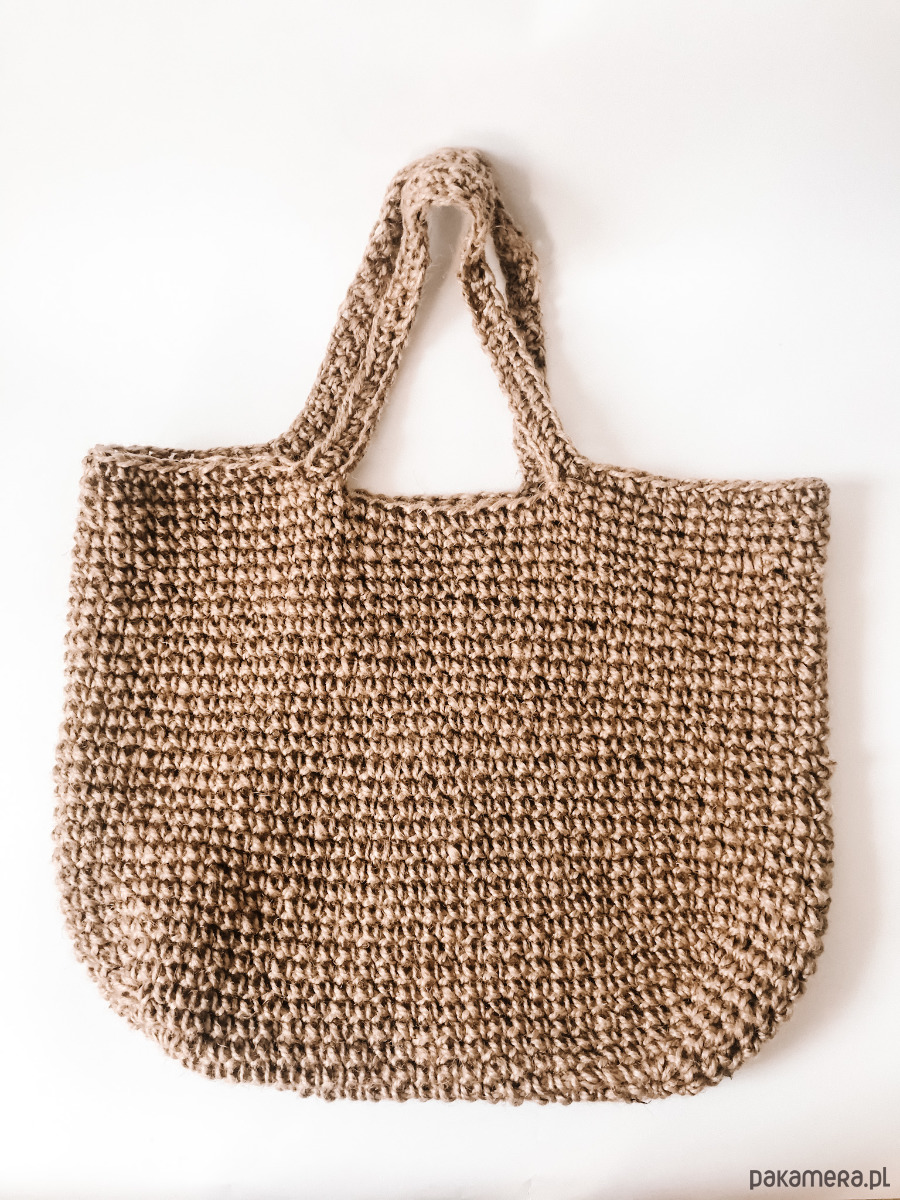 Torba - kosz wykonana ręcznie na szydełku ze sznurka jutowego.