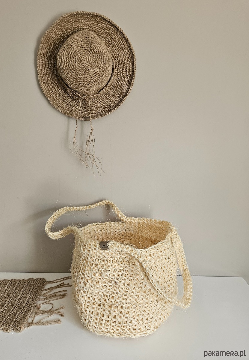 Torba, która pachnie słońcem i naturą. Ręcznie robiona ze sznurka sizalowego – lekkiego, oddychającego i odpornego na wilgoć. Nie chłonie wody, więc sprawdzi się nawet przy kapryśnej pogodzie. Zabierzesz ją na zakupy, spacer, plażę czy piknik. W domu może służyć jako kosz na owoce, osłonka na doniczkę, pieczywo, akcesoria kuchenne albo drobiazgi w przedpokoju. Naturalna, trwała i zachwycająco surowa w formie – po prostu Las i Łąka.