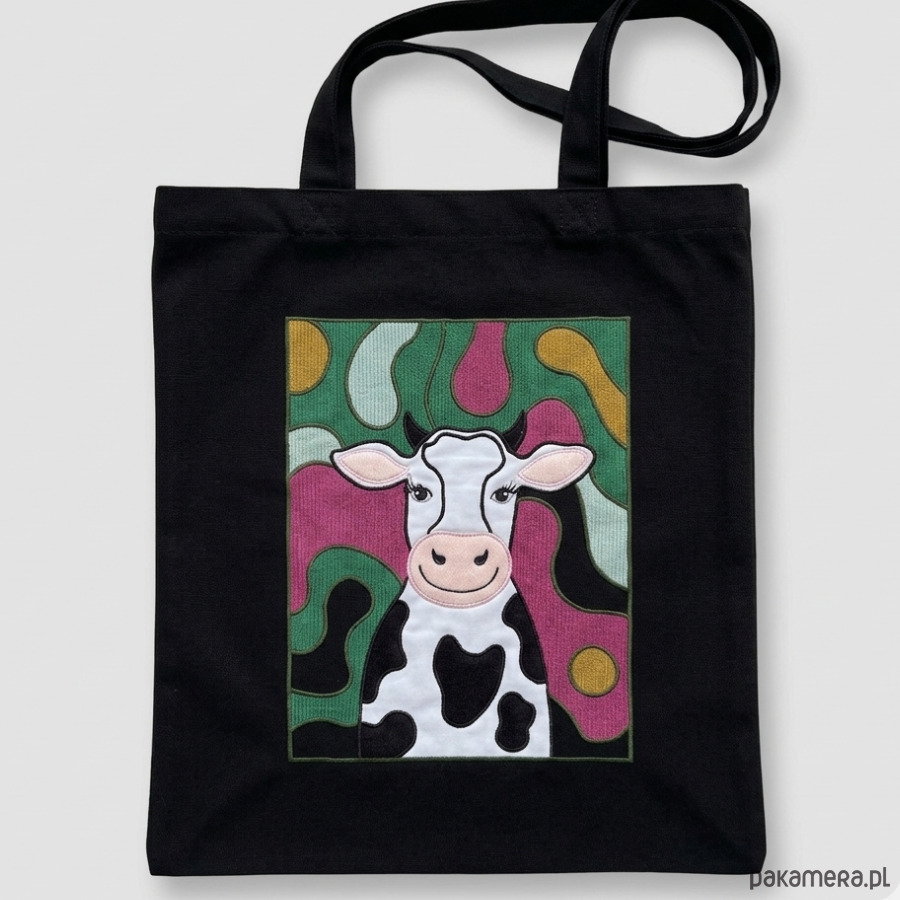Wyróżnij się z tłumu i dodaj koloru do swojej codzienności dzięki naszej unikalnej torbie "Krówka"! Ta klasyczna, czarna torba na ramię została przełamana niezwykle oryginalną i przyciągającą wzrok grafiką, która łączy w sobie haft komputerowy oraz kolorowe materiały. Torba została uszyta własnoręcznie z wysokiej jakości materiału.