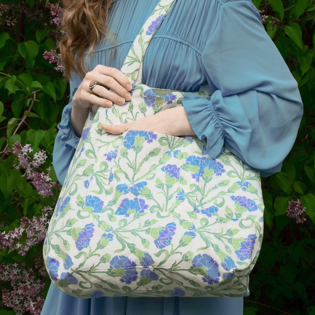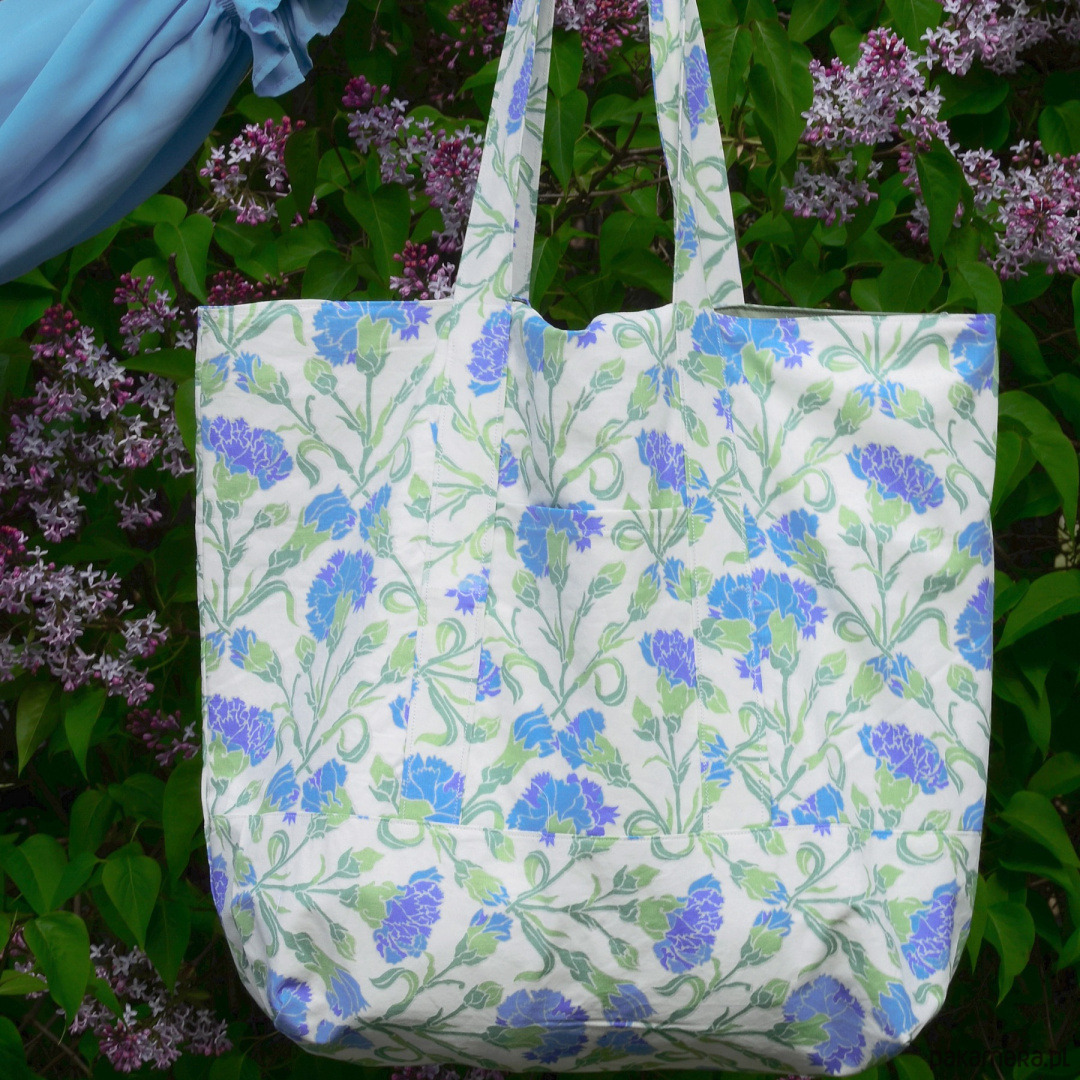 Ten model został uszyty w Polsce, z dbałością o detale – wykończenia są staranne, a tkanina miła w dotyku. Dzięki wzorowi w błękitne goździki torba wpisuje się w subtelny, kobiecy styl, który nie wychodzi z mody. Nie jest krzykliwa, ale na tyle wyrazista, by podkreślić Twoją indywidualność.