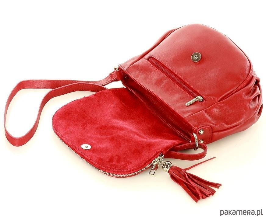 Czerwona damska listonoszka wykonana została z naturalnej, gładkiej skóry sauvage. Jest to mocna i gęsta skóra bydlęca o gładkiej powierzchni. Torby damskie z tego materiału są bardzo wytrzymałe na obciążenia. Elegancki fason, w oprawie z solidnej naturalnej skóry, zapewnia komfort użytkowania na najwyższym poziomie. Naturalna skóra to nie tylko bardzo wytrzymały surowiec, ale również doskonale zachowujący swoją formę przez lata.