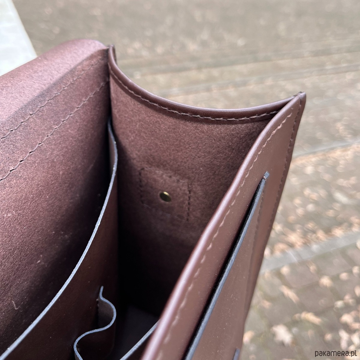 Główna, pojemna komora pomieści laptop, dokumenty oraz wszystkie niezbędne rzeczy na co dzień. Dwie dodatkowe duże kieszenie umieszczone wewnątrz zwiększają funkcjonalność torby, pozwalając na wygodną organizację mniejszych przedmiotów. Na froncie torby znajduje się również płaska kieszeń, która umożliwia szybkie schowanie dokumentów lub innych podręcznych rzeczy.