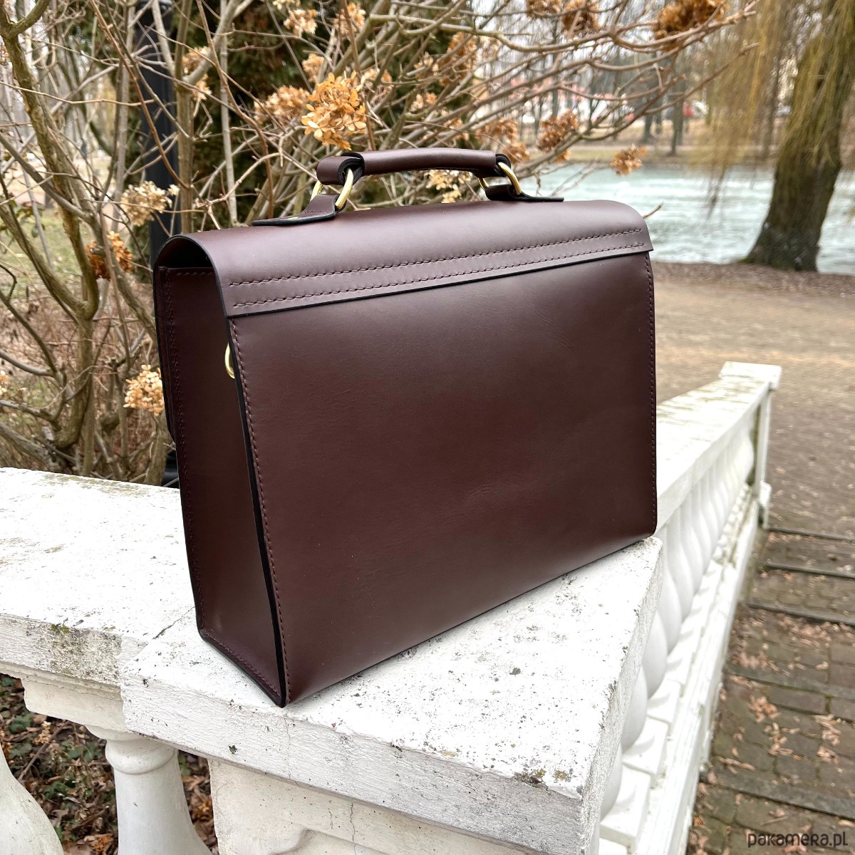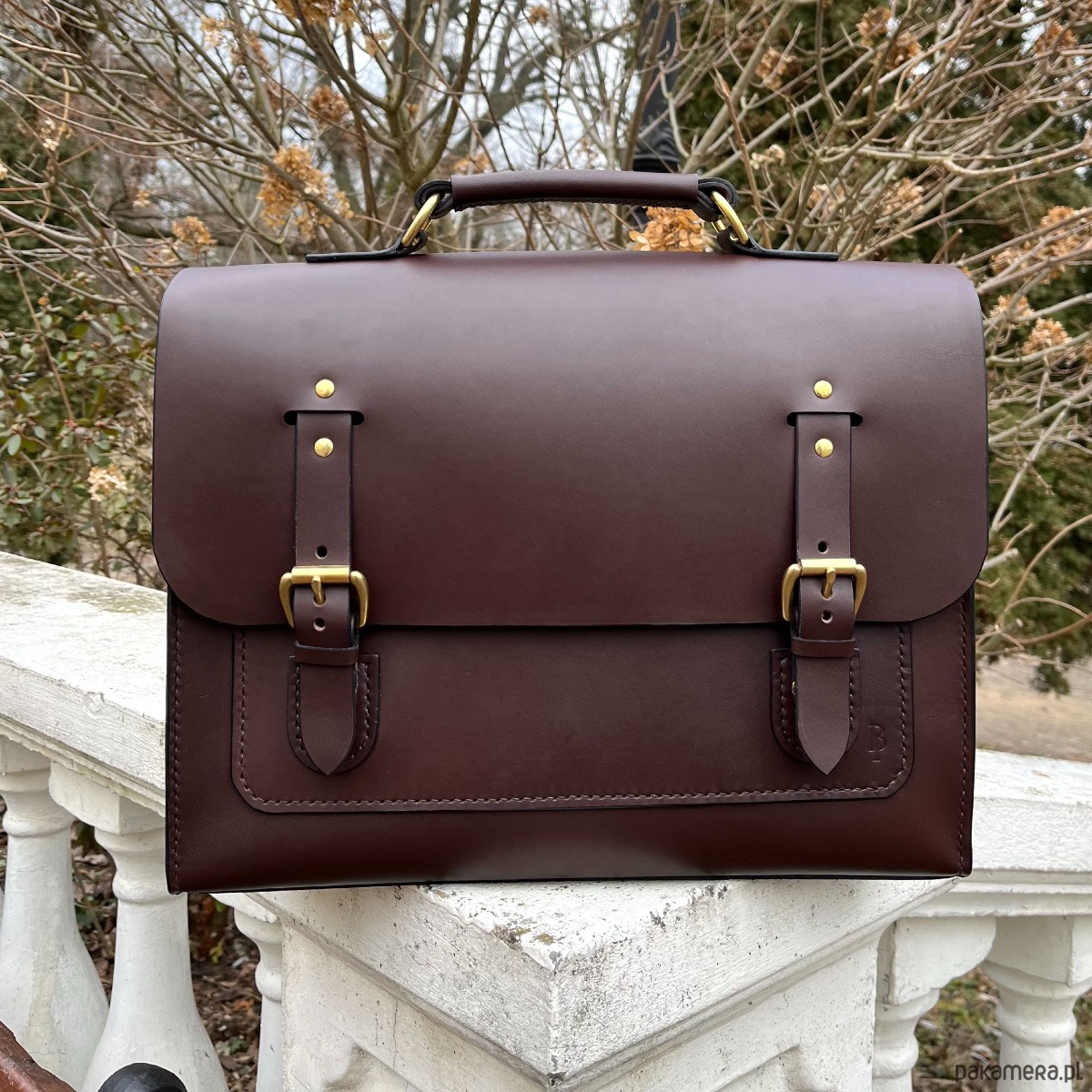 Ręcznie szyta torba w stylu listonoszki to połączenie klasycznego designu i najwyższej jakości rzemiosła. Wykonana w całości z włoskiej skóry garbowanej roślinnie Vachetta, charakteryzuje się naturalnym pięknem i trwałością, które z upływem czasu nabierają szlachetnej patyny. Skóra Vachetta wyróżnia się wyjątkową elastycznością i dużą sztywnością, a jednocześnie wysoką odpornością na codzienne użytkowanie. Każdy szew wykonany jest ręcznie techniką szycia na dwie igły, co gwarantuje niezrównaną trwałość i estetykę. Tradycyjnie obrabiane krawędzie są szlifowane, polerowane i woskowane, dzięki czemu są gładkie i odporne na uszkodzenia.