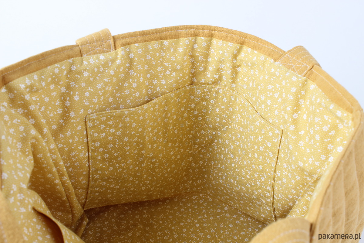 Ta torba została uszyta z 100% lnu, naturalnej tkaniny, która oddycha, jest wytrzymała i z czasem nabiera jeszcze większego uroku. Pikowana faktura sprawia, że torba nie tylko pięknie się prezentuje, ale też zachowuje formę. W środku czeka na Ciebie bawełniana podszewka w delikatne kwiatuszki – drobny detal, który wywołuje uśmiech za każdym razem, gdy sięgasz po swoje rzeczy.