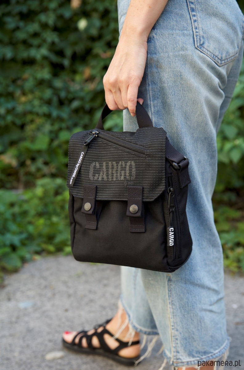 Torba mini-plecak na ramię CARGO by OWEE ma komorę główną, dwie kieszenie wewnętrzne i dwie zewnętrzne kieszonki zapinane na suwak.