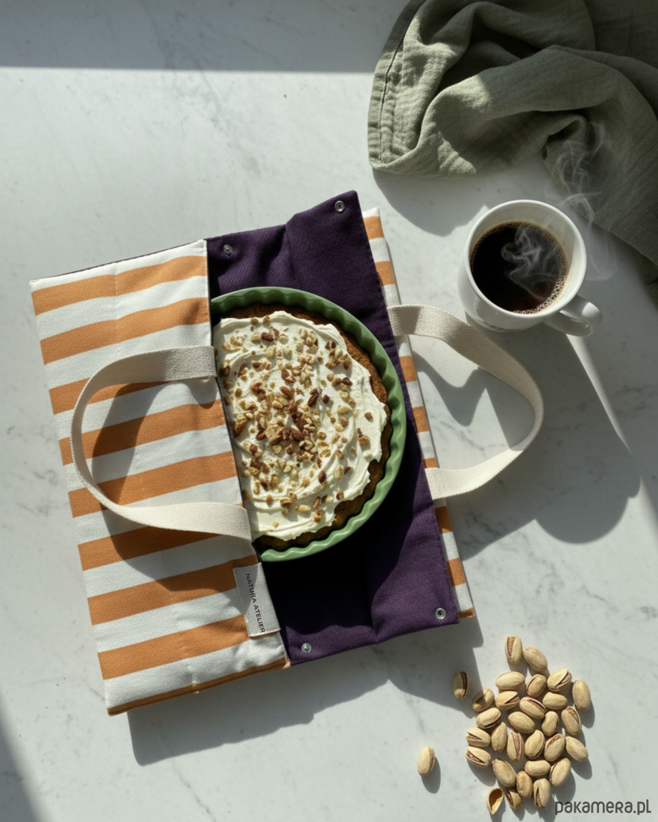 Ta elegancka torba to przedłużenie ciepła, estetyki i dbałości o detal, jakie panują w Twoim domu. To idealny sposób, by z dumą transportować swoje kulinarne dzieła – słodkie tarty, wytrawne quiche, czy pyszne paszteciki.