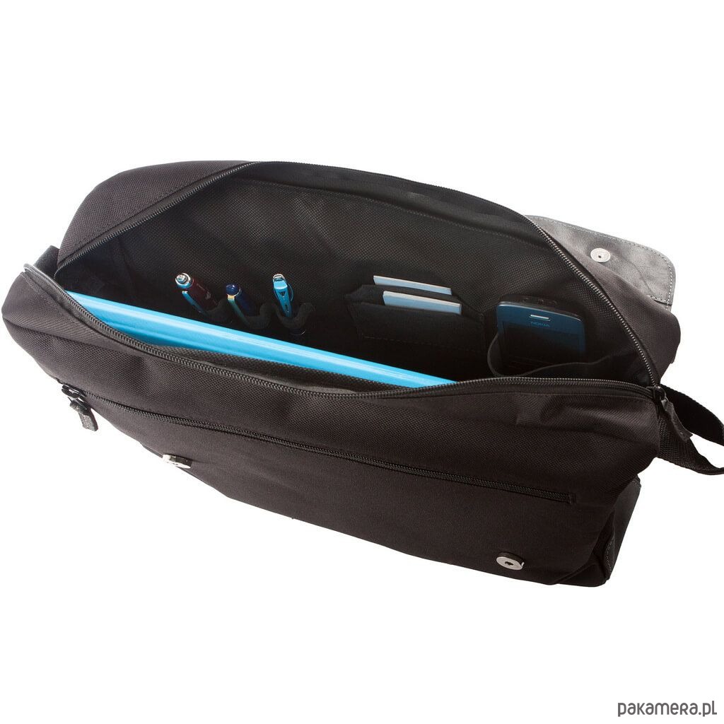 Klasyczny pas na ramieniu o regulowanej długości do 135 cm, szeroki na 3 cm, pozwala na wygodne obciążenie nawet wtedy, gdy torba jest wypełniona po brzegi.