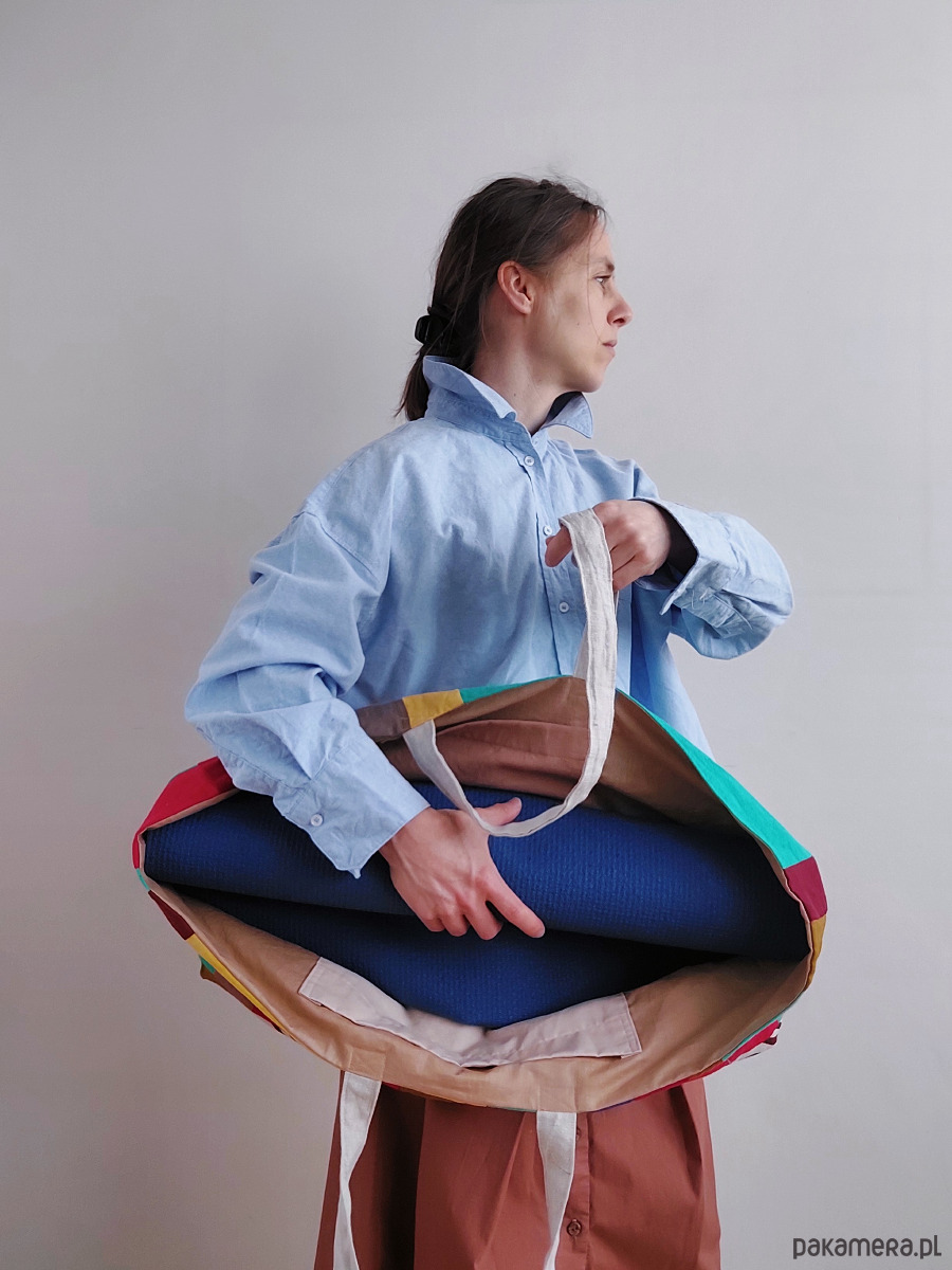 Jest wygodna w pakowaniu i noszeniu na ramieniu, szybka i prosta w użyciu: wrzucasz matę i już, zero zamków, zero sznurków. Pomieści też paski, klocki do jogi i ciuchy.