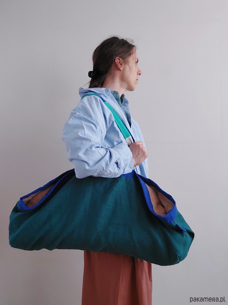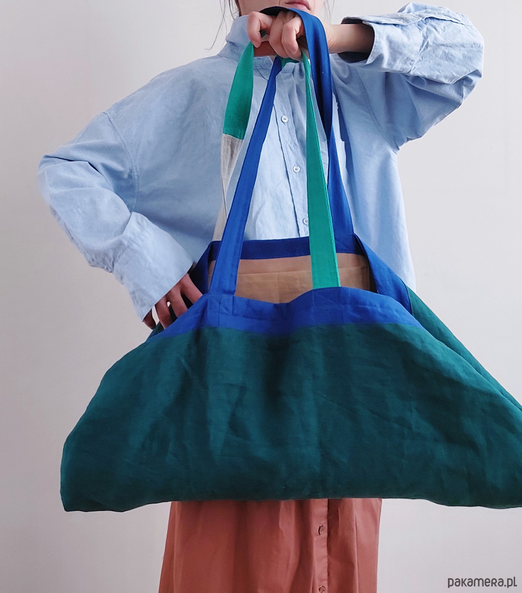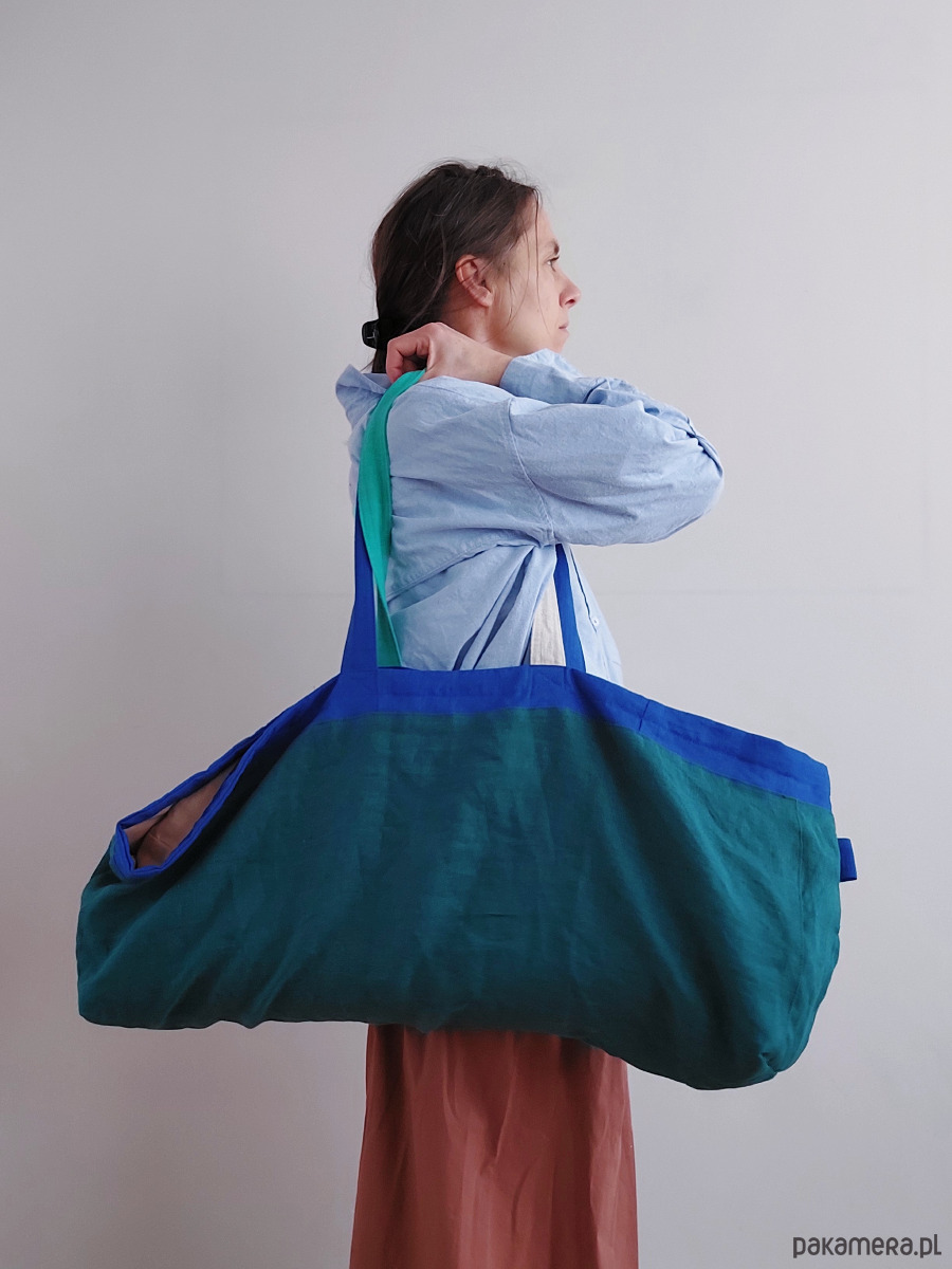 Cudownie wygodna torba na jogę/miasto/plażę, uszyta w polskiej szwalni madebyjokpa w duchu ZERO WASTE (bezstratnie). Patchwork z kawałków 100% lnu, w kolorze pięknej zieleni, chabru, seledynu i jasnego naturalnego. Wnętrze wykonane z bawełny 100% ,torba ma wewnętrzną kieszeń np. na telefon i klucze.