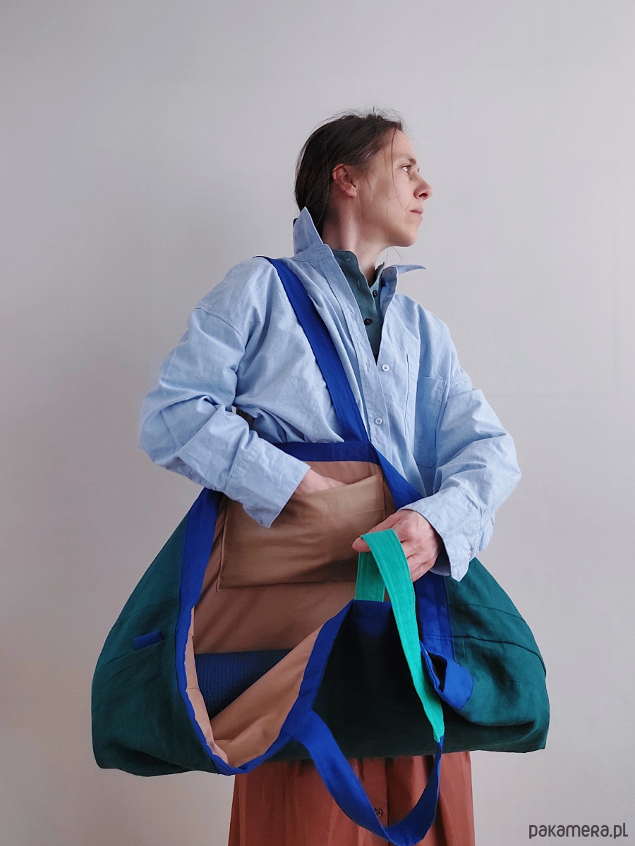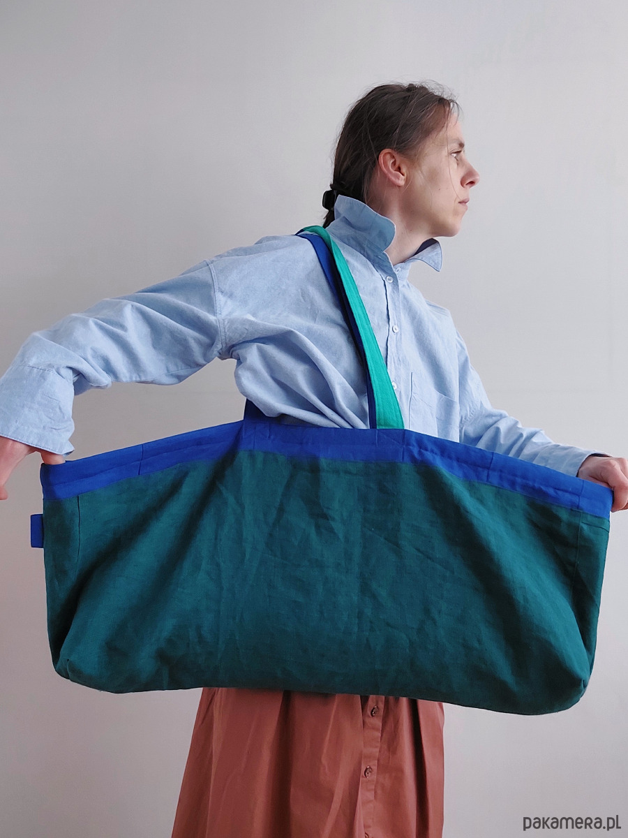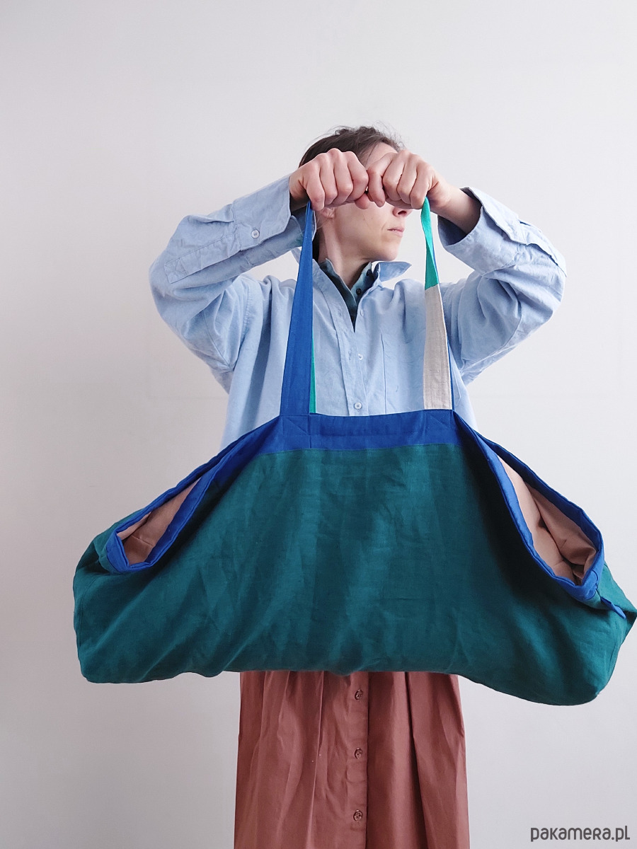 Cudownie wygodna torba na jogę/miasto/plażę, uszyta w polskiej szwalni madebyjokpa w duchu ZERO WASTE (bezstratnie). Patchwork z kawałków 100% lnu, w kolorze pięknej zieleni, chabru, seledynu i jasnego naturalnego. Wnętrze wykonane z bawełny 100% ,torba ma wewnętrzną kieszeń np. na telefon i klucze.