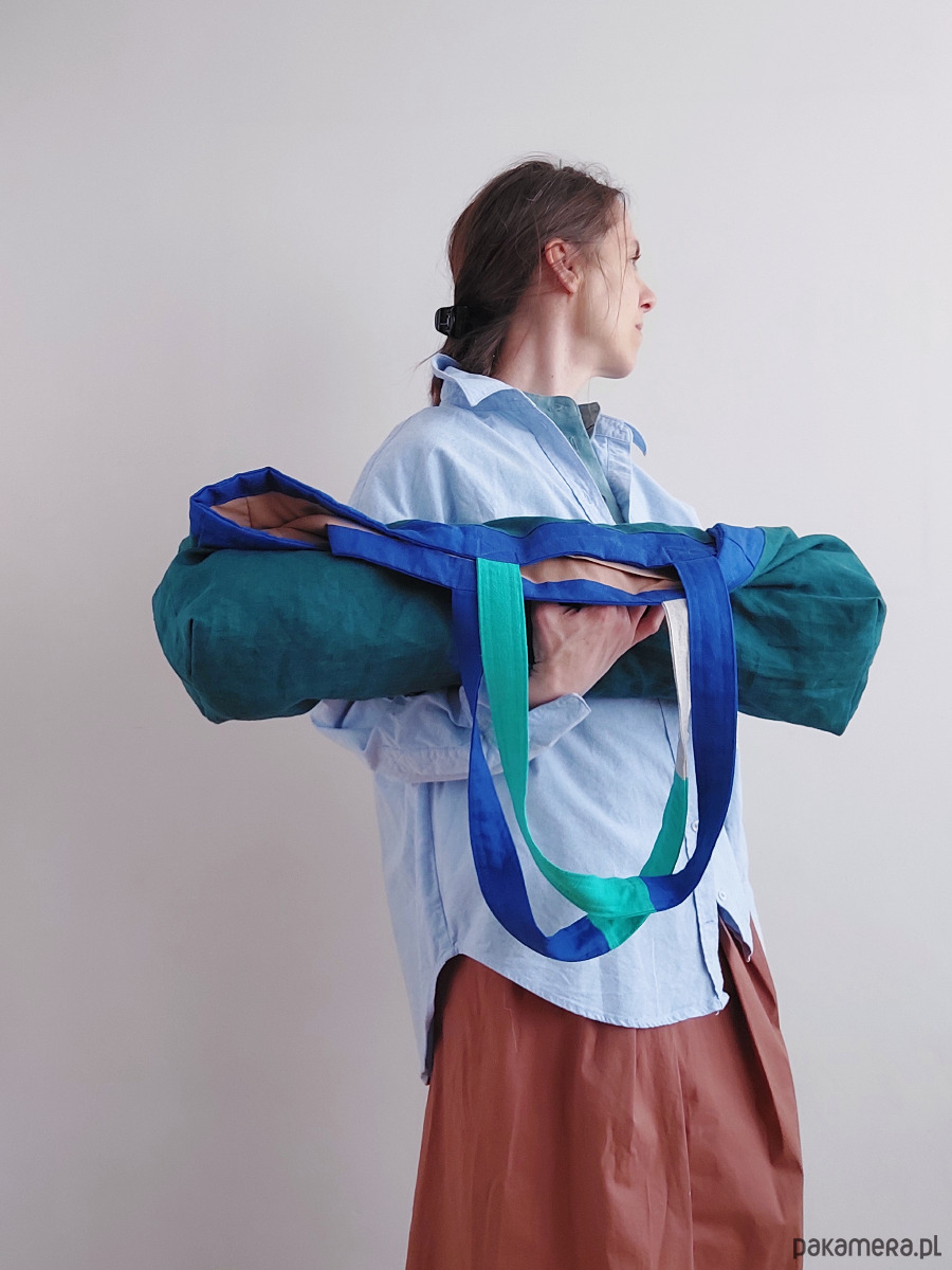 Jest wygodna w pakowaniu i noszeniu na ramieniu, szybka i prosta w użyciu: wrzucasz matę i już, zero zamków, zero sznurków. Pomieści też paski, klocki do jogi i ciuchy.
