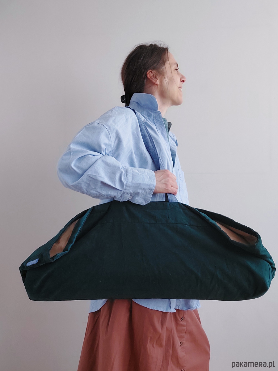 Jest wygodna w pakowaniu i noszeniu na ramieniu, szybka i prosta w użyciu: wrzucasz matę i już, zero zamków, zero sznurków. Pomieści też paski, klocki do jogi i ciuchy.