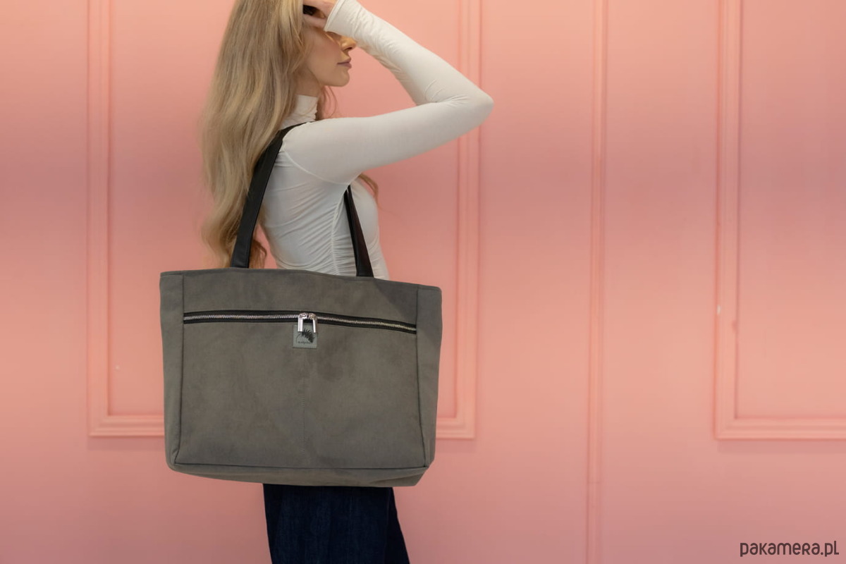 Torba NA LAPTOP Shopper szara z nubuku tapicerskiego