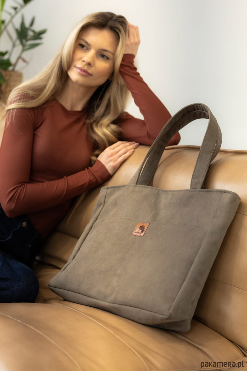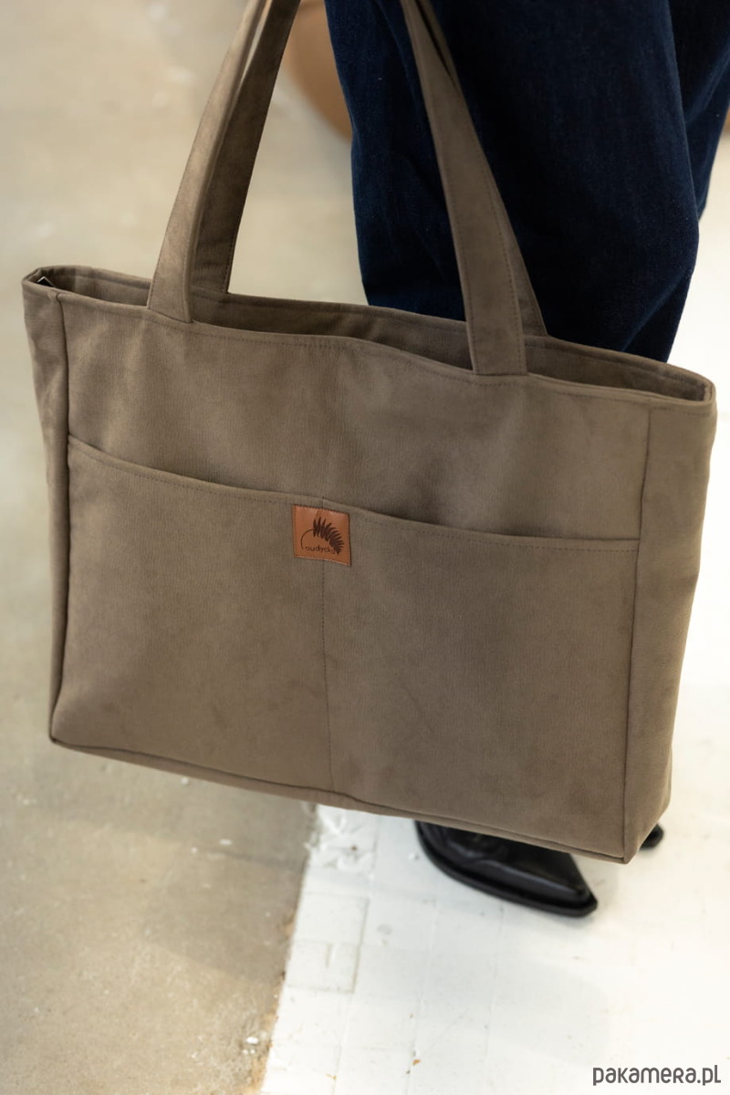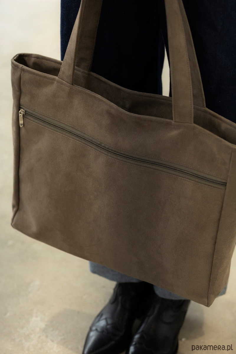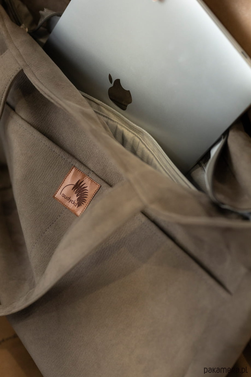 Duża, nubukowa torba z kieszenią na laptop.