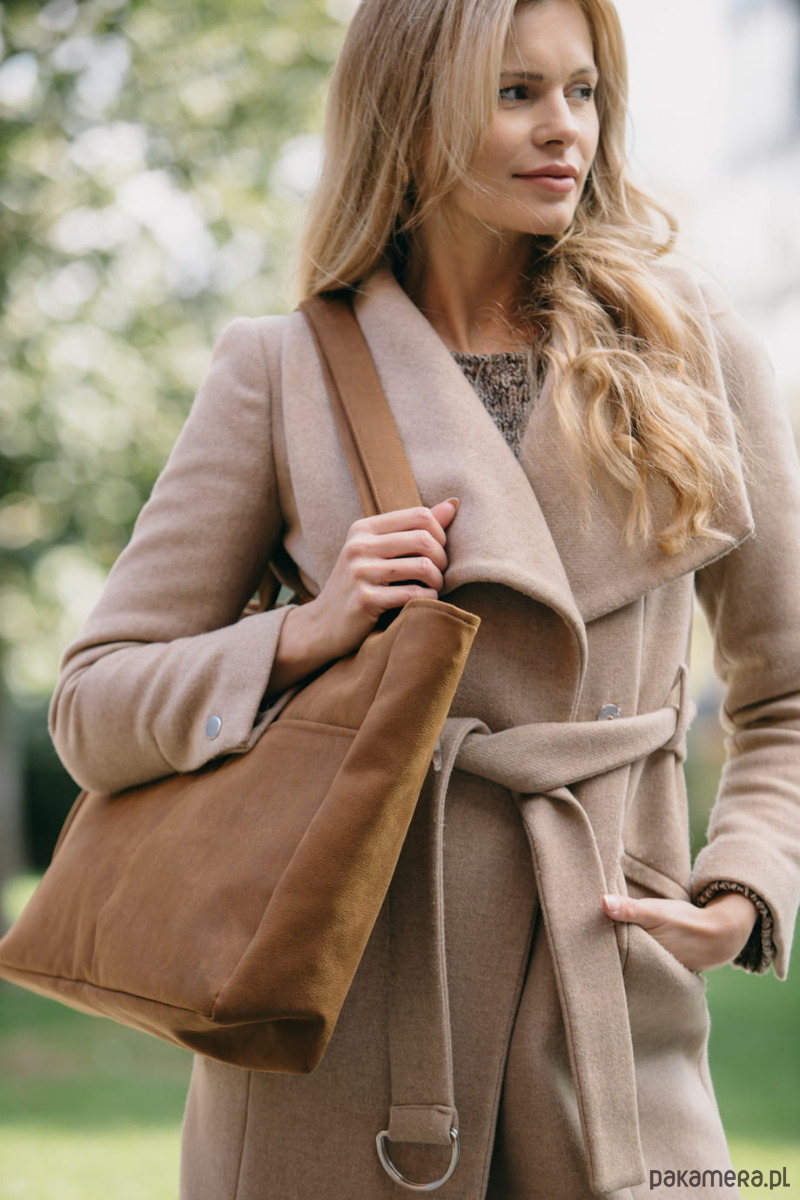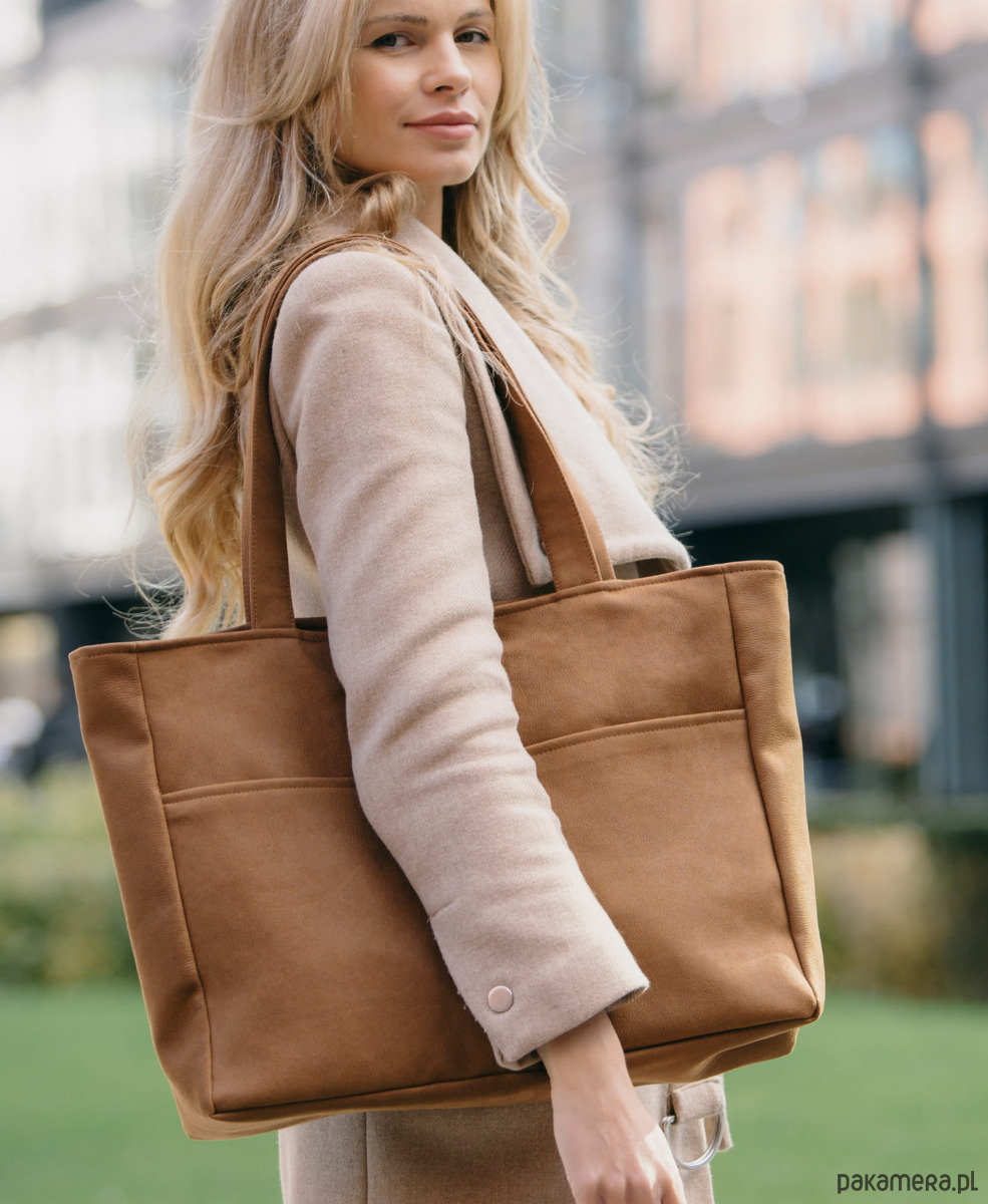 Torba NA LAPTOP Shopper z nubuku tapicerskiego w kolorze camel